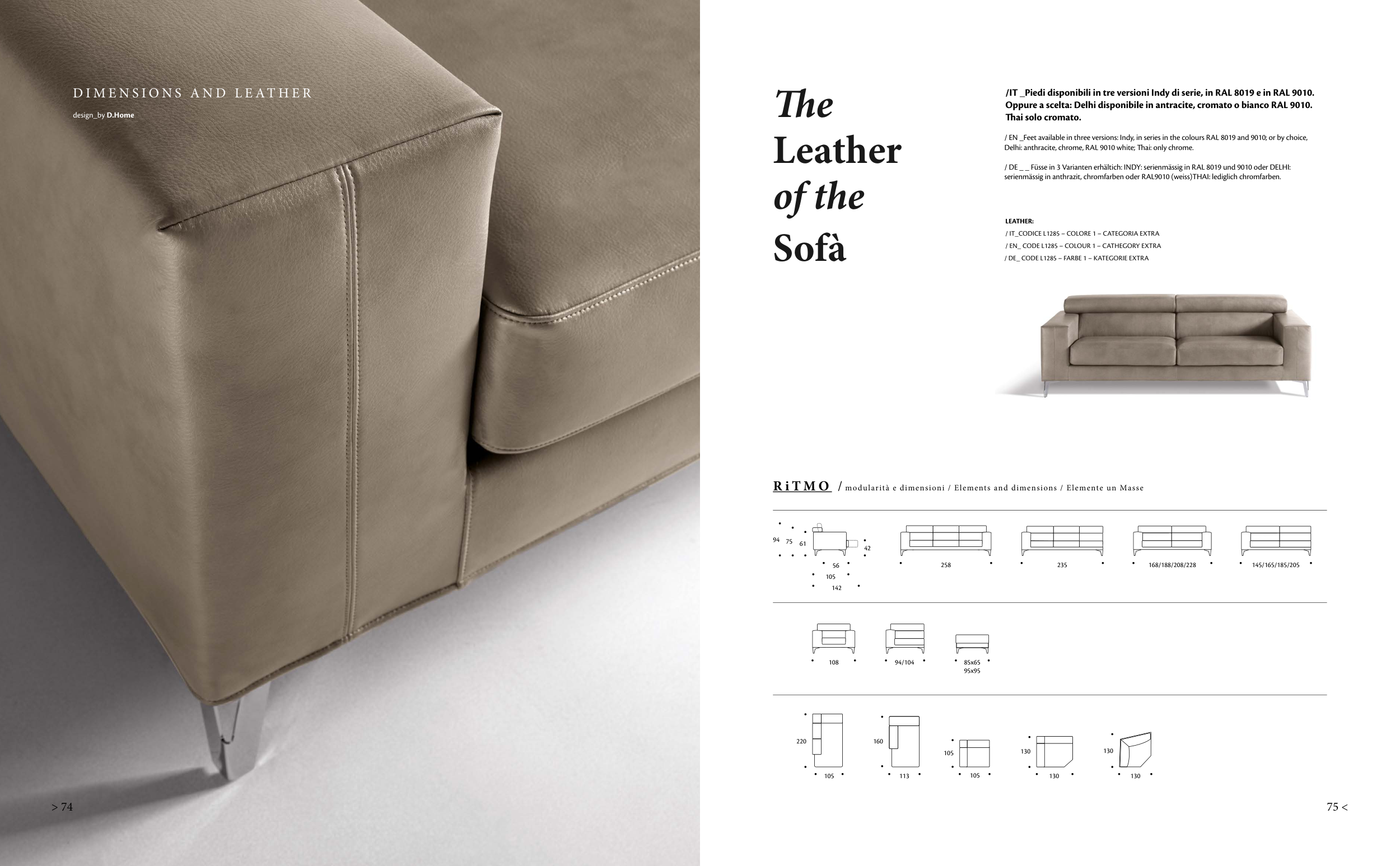 / DE _ _ Füsse in 3 Varianten erhältich: INDY: serienmässig in RAL 8019 und 9010 oder DELHI: