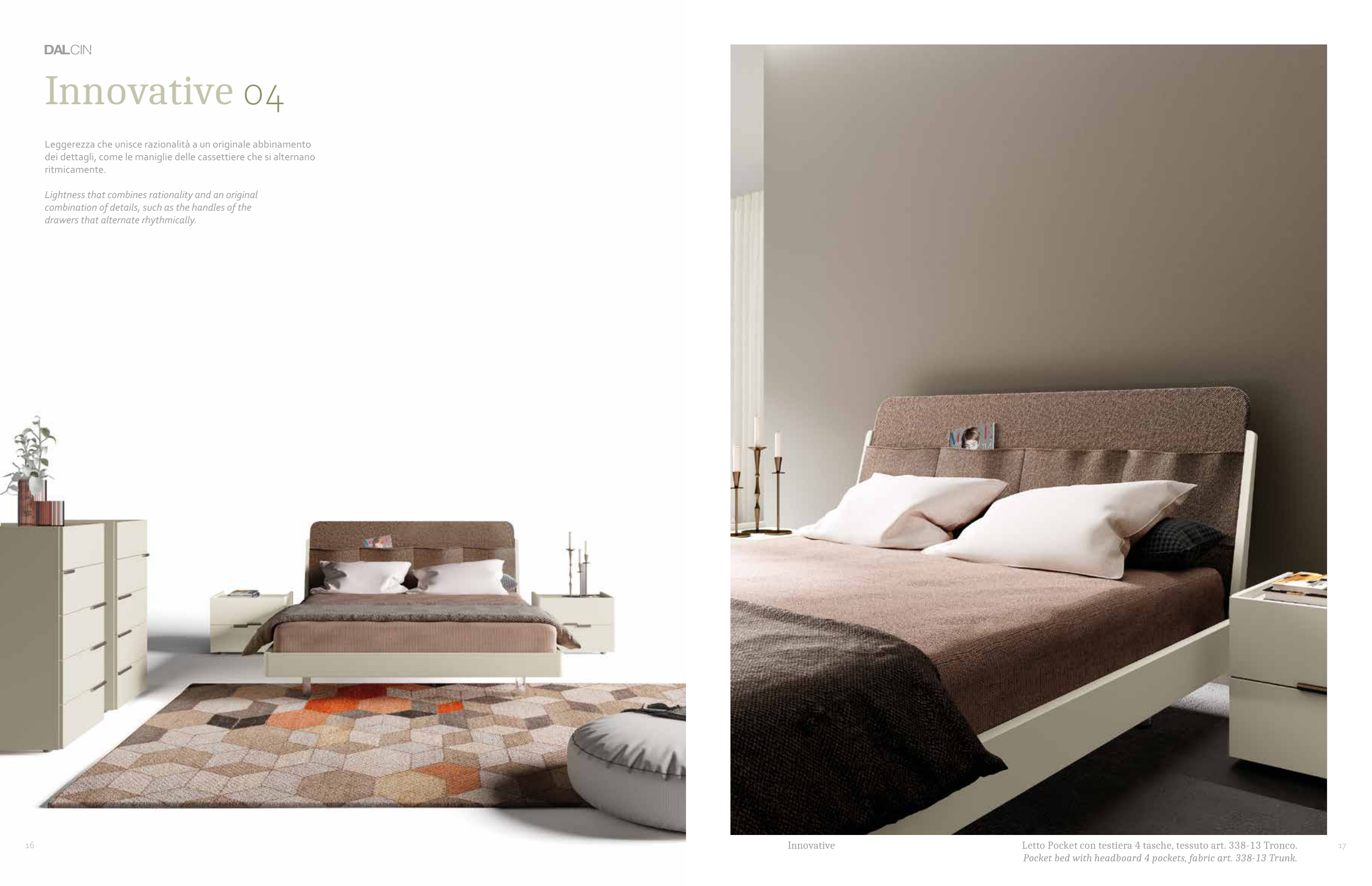 Letto Pocket con testiera 4 tasche, tessuto art. 338-13 Tronco.