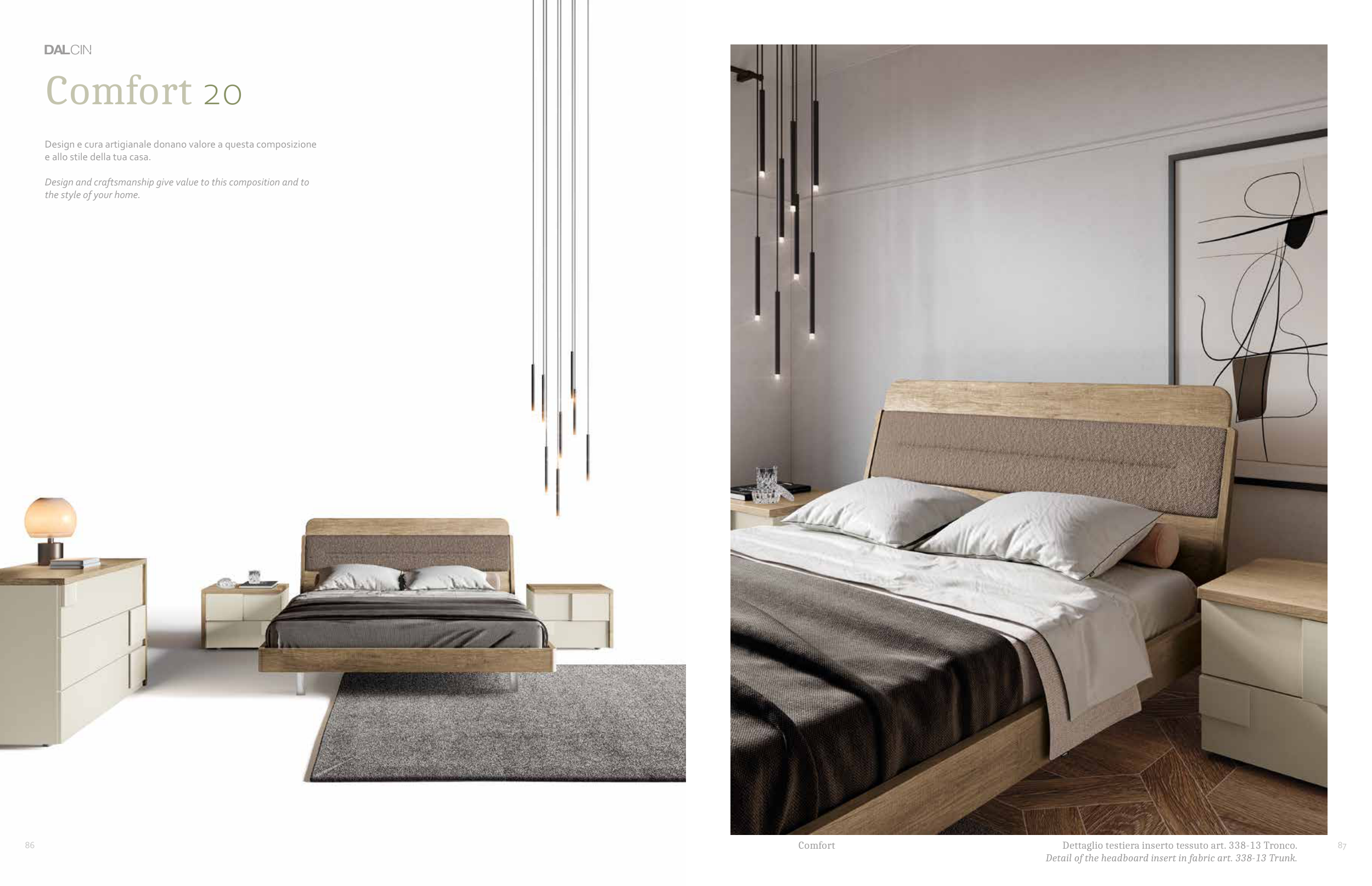 Dettaglio testiera inserto tessuto art. 338-13 Tronco.