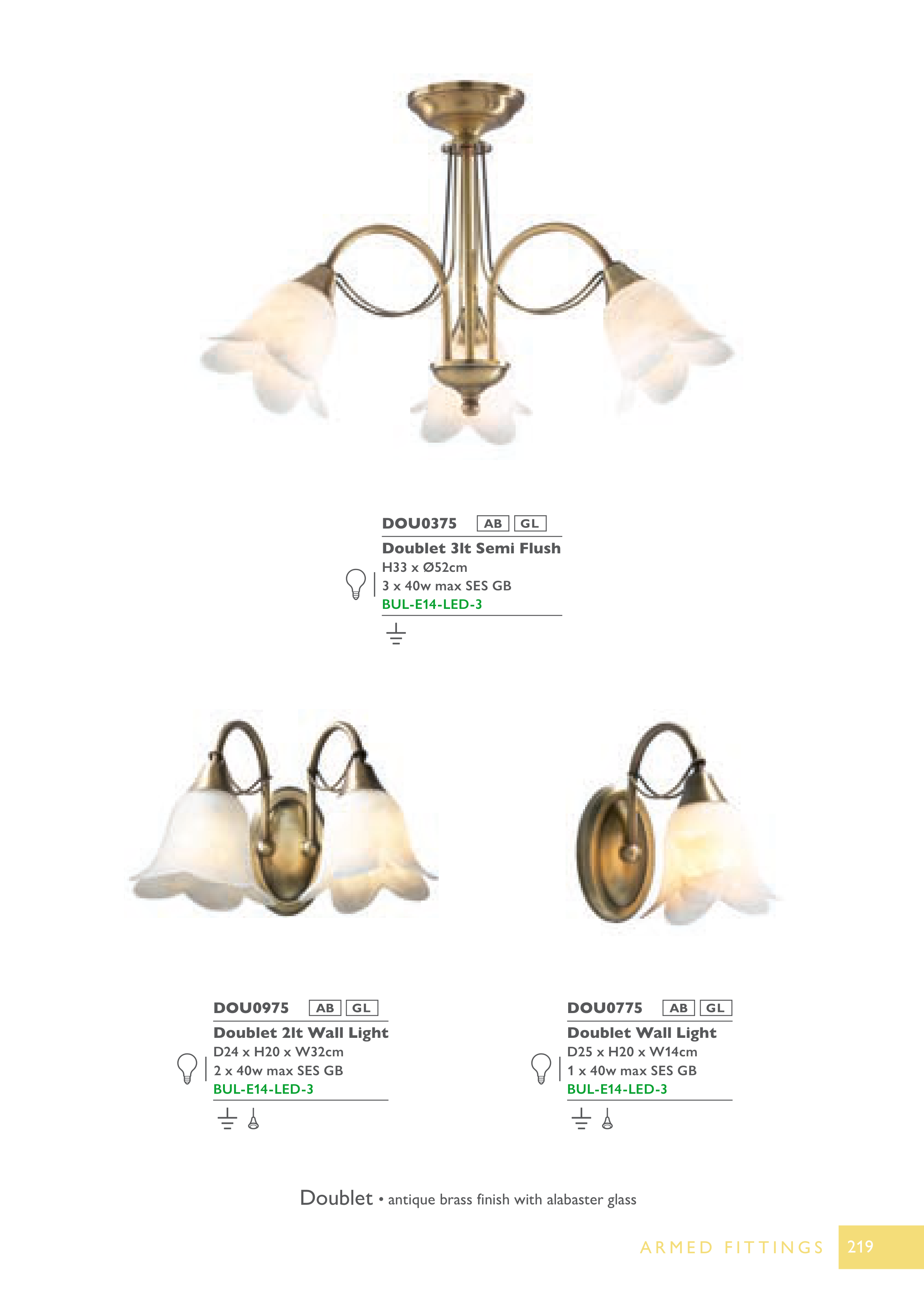 • antique brass finish with alabaster glass