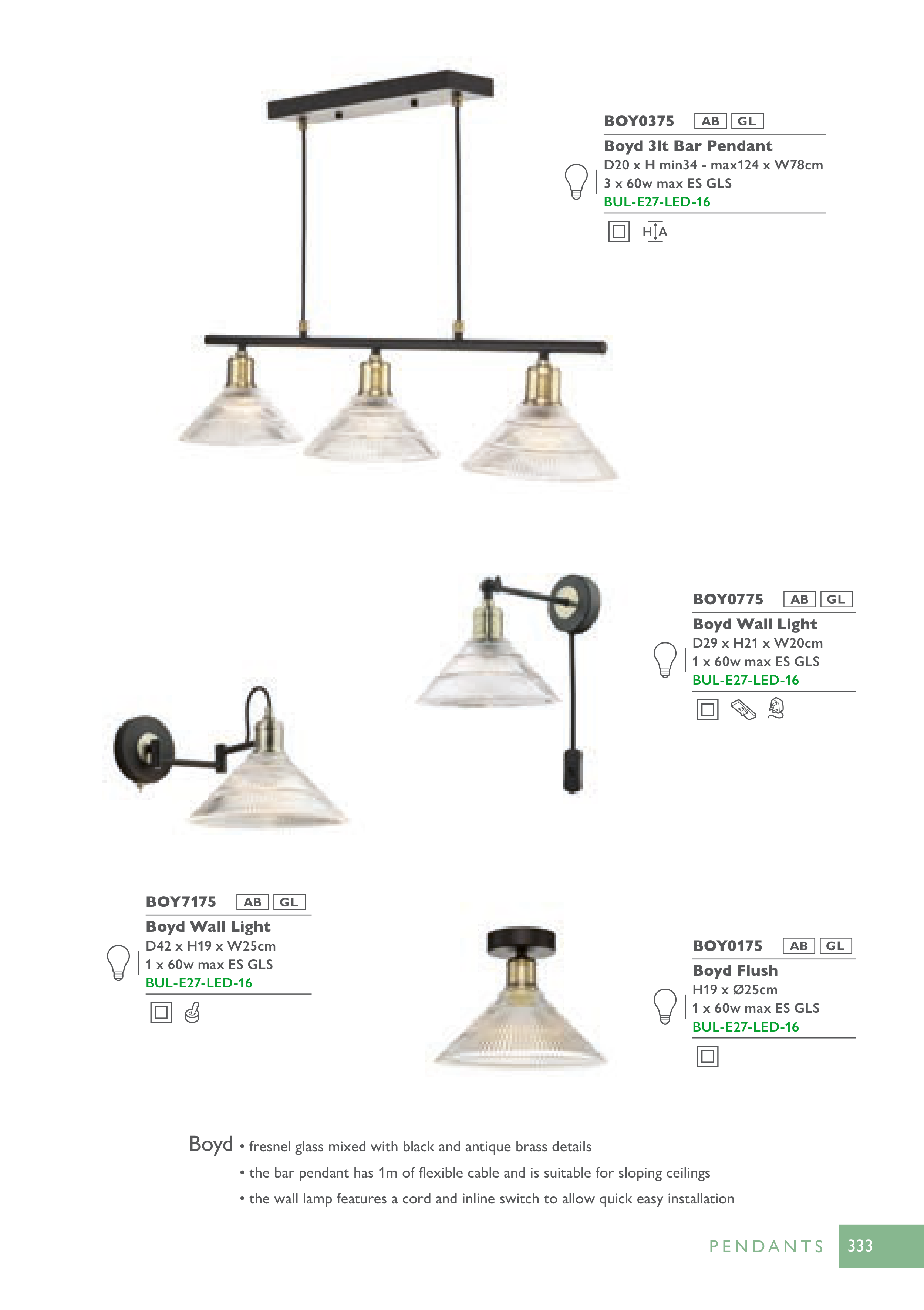 • the bar pendant has 1m of flexible cable and is suitable for sloping ceilings