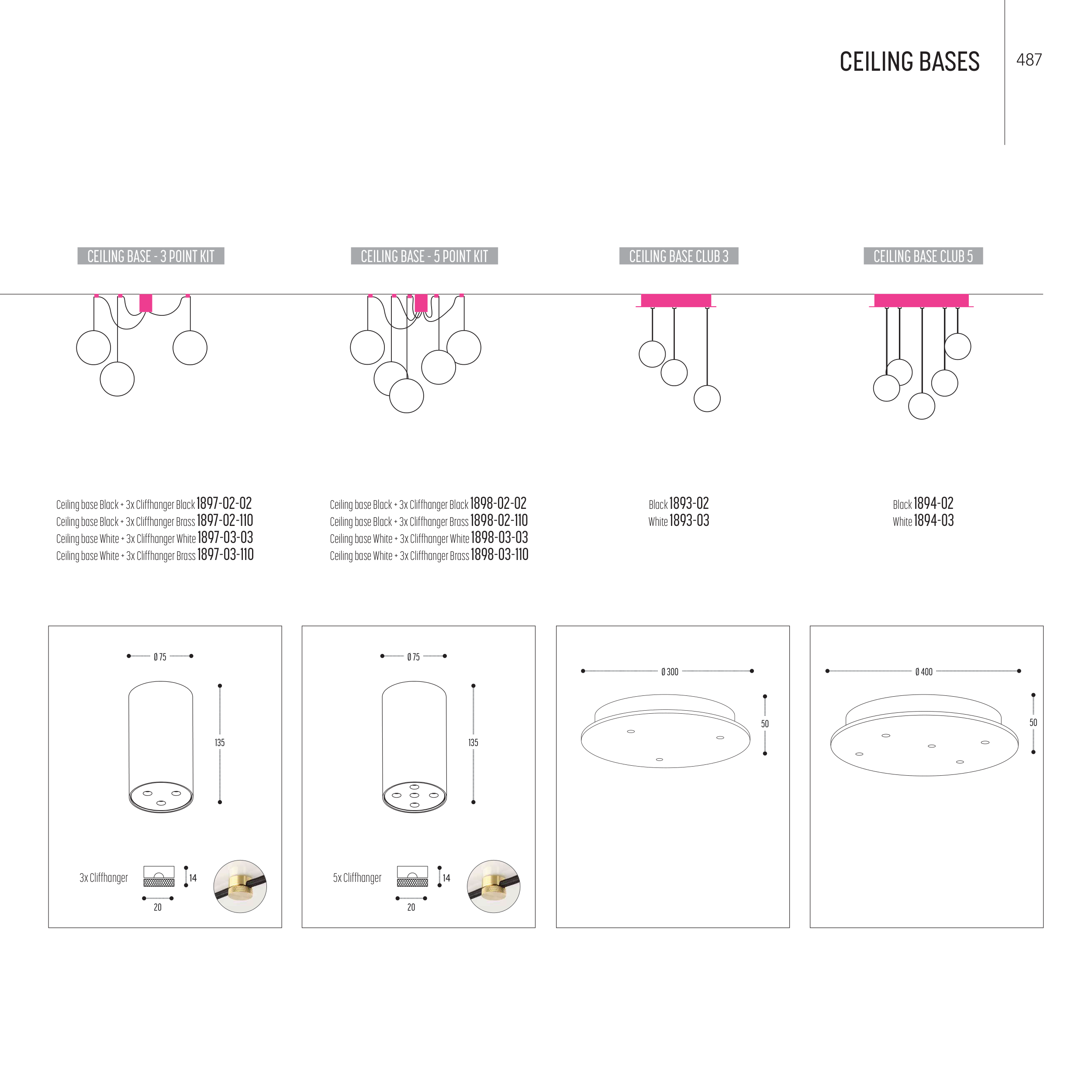 Ceiling base Black + 3x Cliffhanger Black 1898-02-02