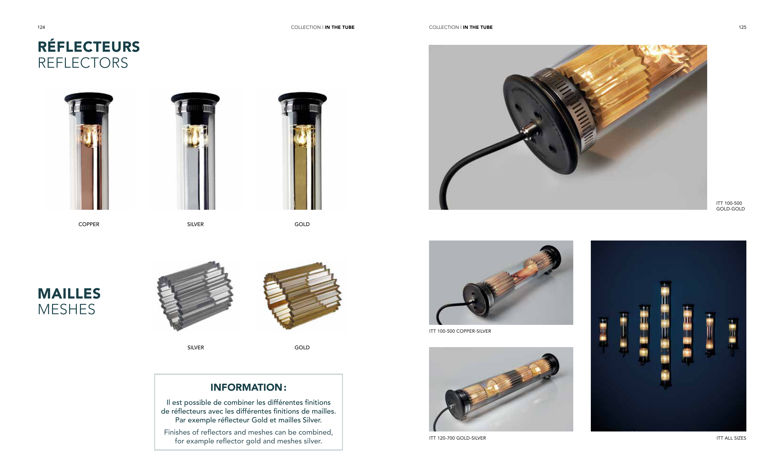 Finishes of reflectors and meshes can be combined,
