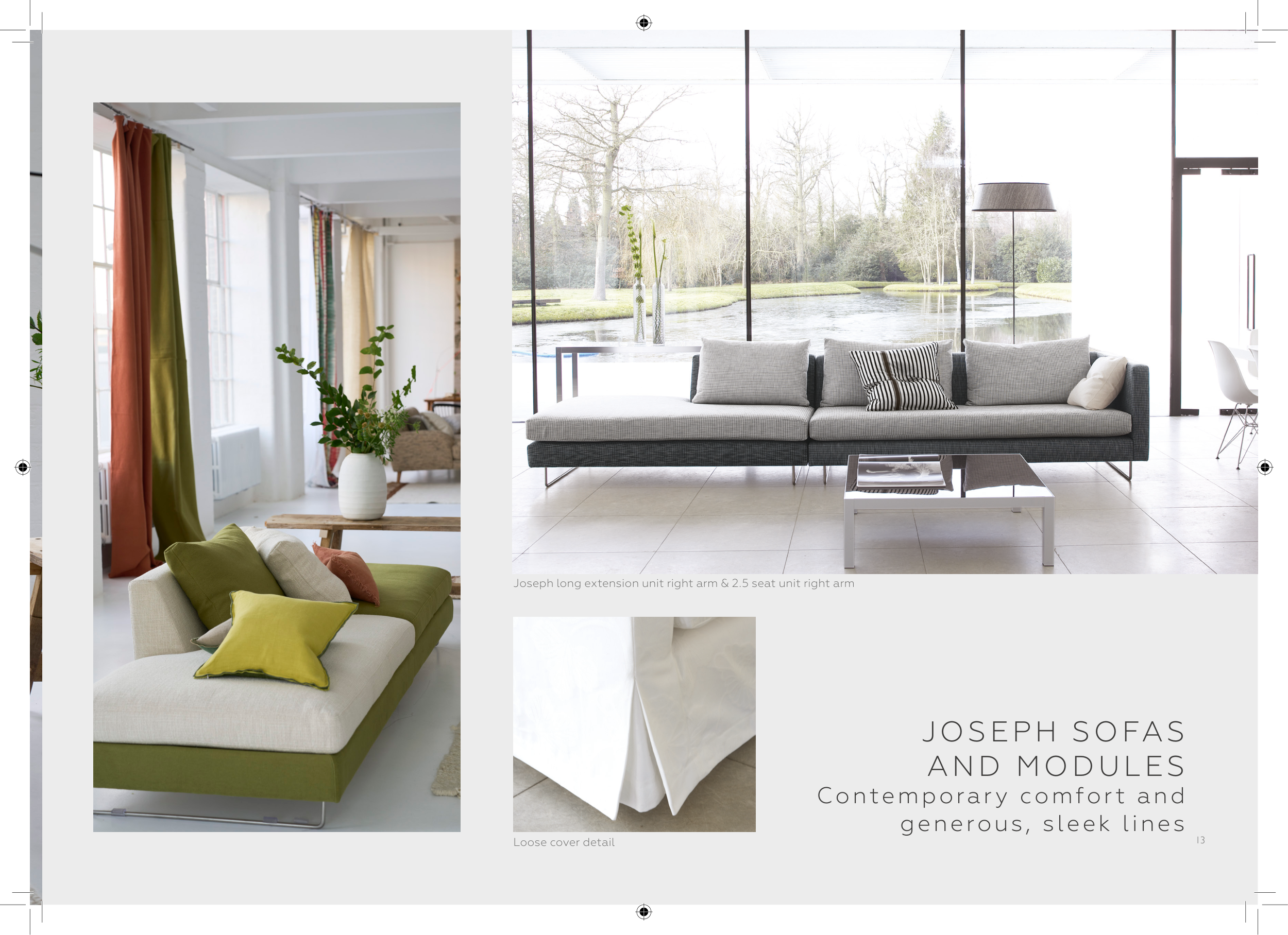 JOSEPH SOFAS AND MODULES Contemporar y comfor t and generous, sleek lines Loose cover detail Joseph long extension unit right arm & 2.5 seat unit right arm 13