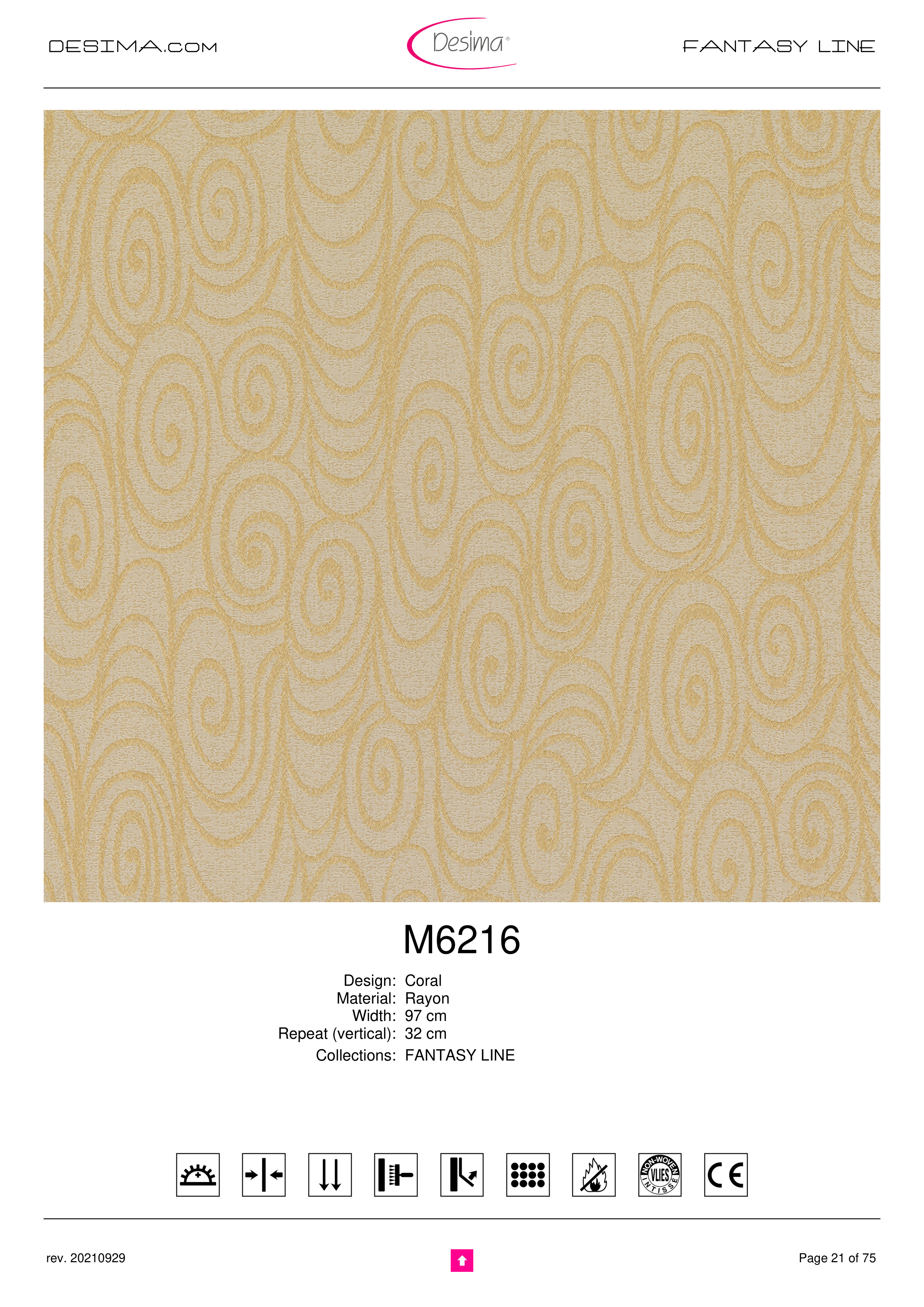 DESIMA.com FANTASY LINE M6216 Design: Coral Material: Rayon Width: 97 cm Repeat (vertical): 32 cm Collections: FANTASY LINE Page 21 of 75 rev. 20210929