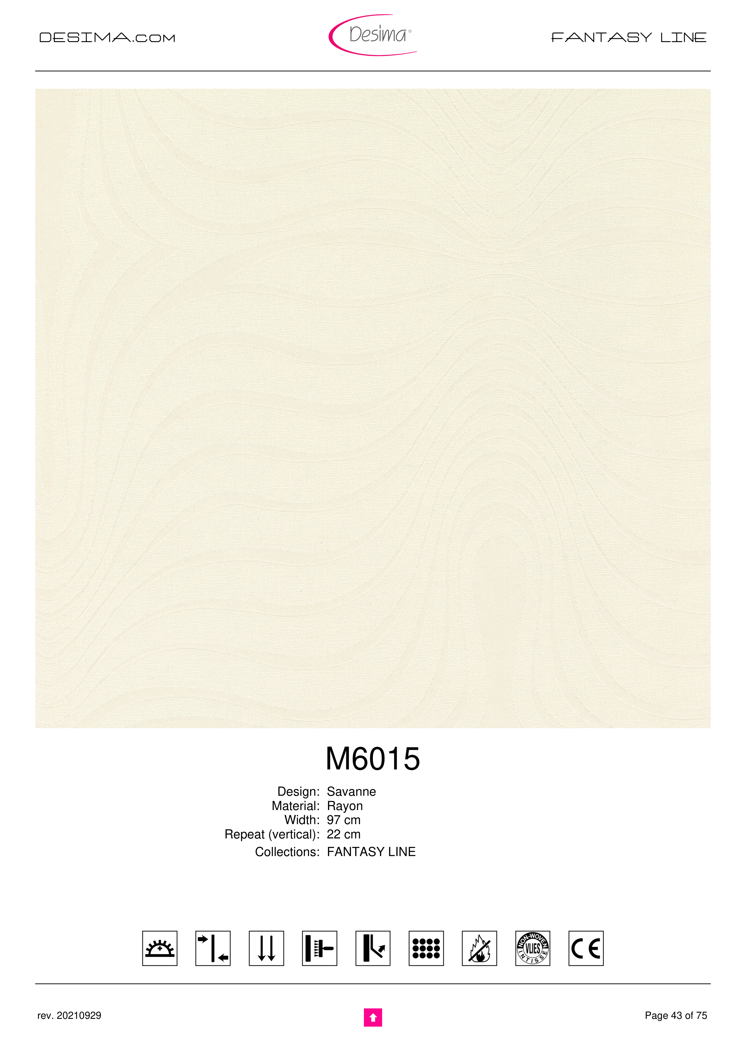 DESIMA.com FANTASY LINE M6015 Design: Savanne Material: Rayon Width: 97 cm Repeat (vertical): 22 cm Collections: FANTASY LINE Page 43 of 75 rev. 20210929