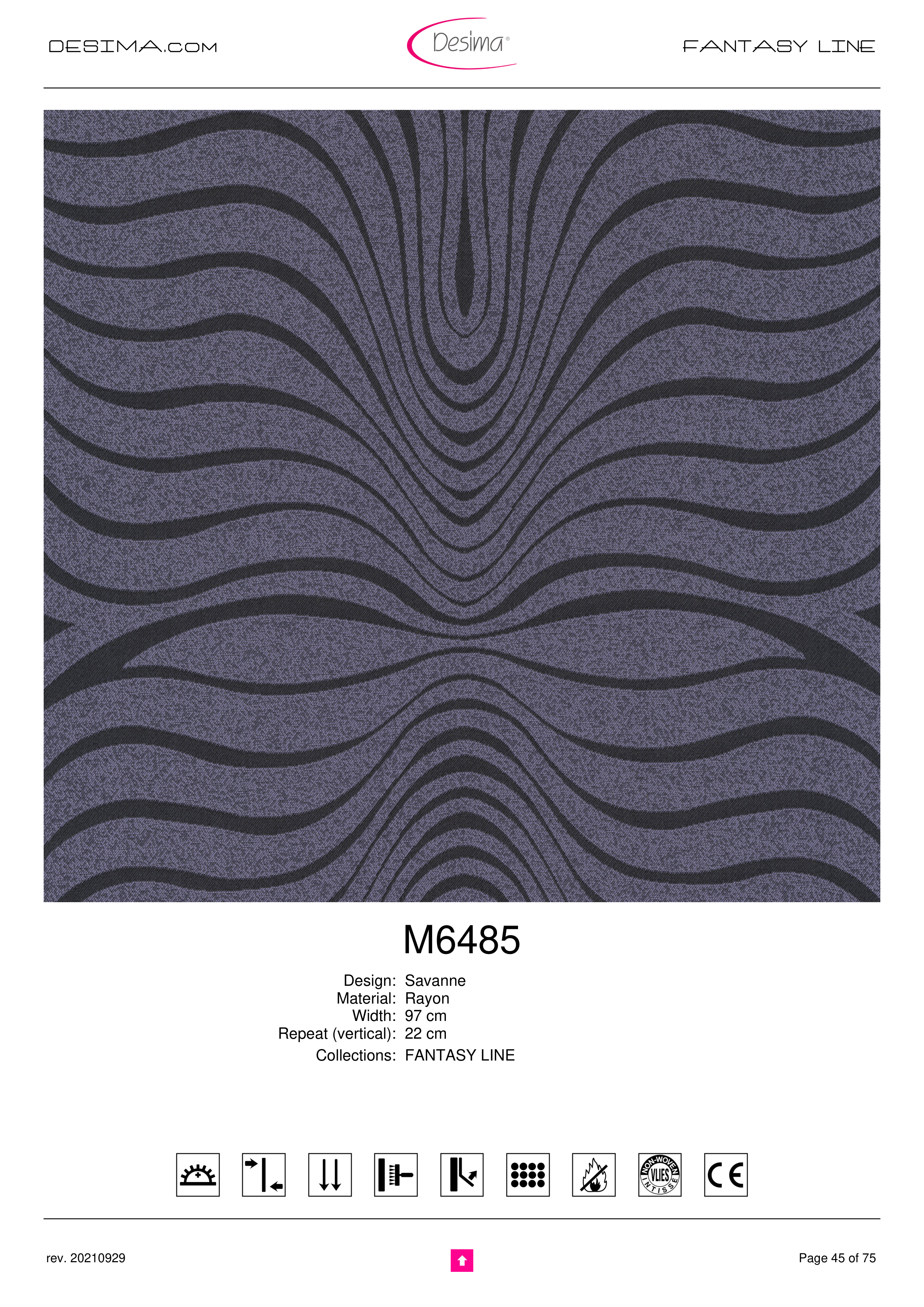 DESIMA.com FANTASY LINE M6485 Design: Savanne Material: Rayon Width: 97 cm Repeat (vertical): 22 cm Collections: FANTASY LINE Page 45 of 75 rev. 20210929