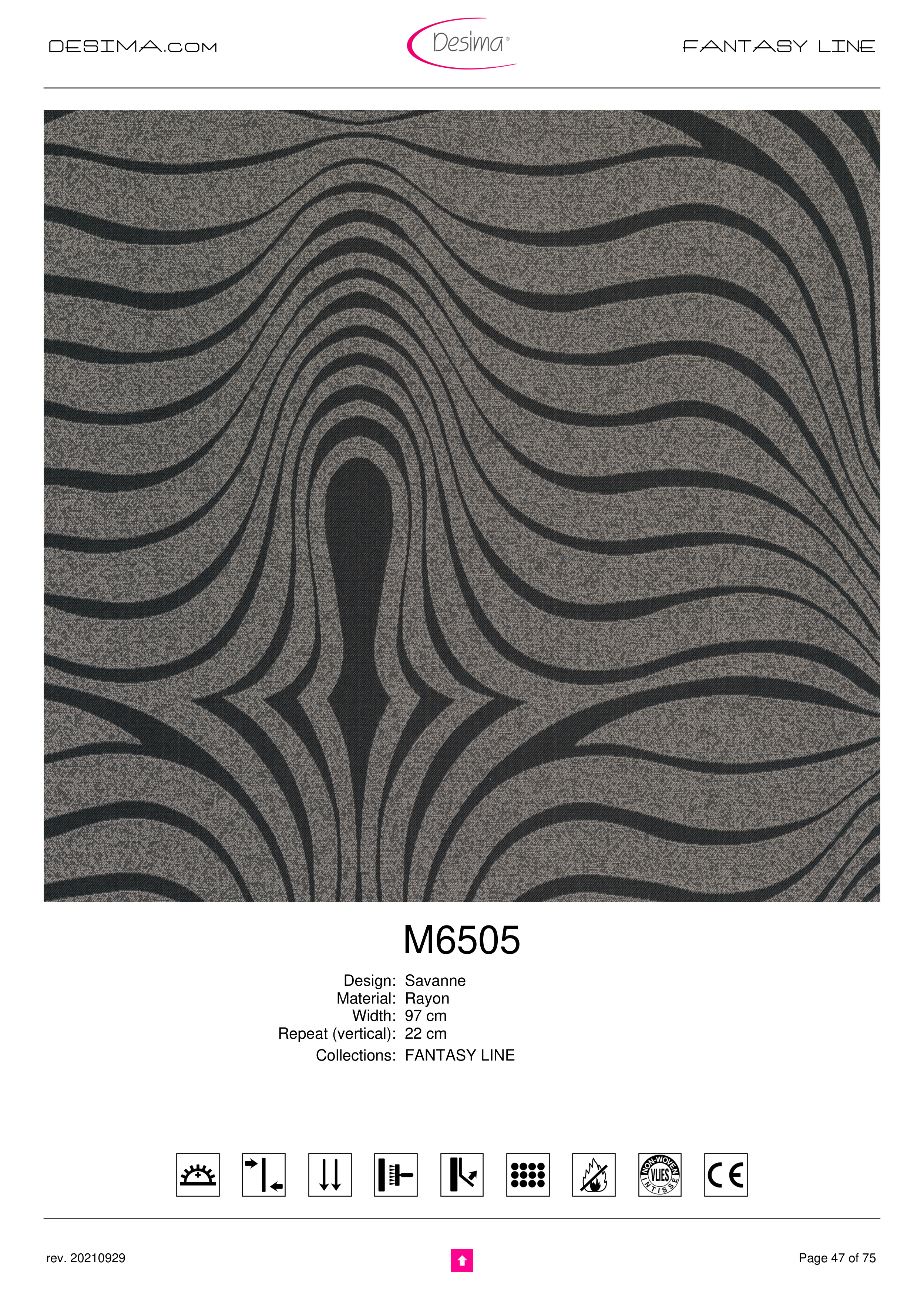 DESIMA.com FANTASY LINE M6505 Design: Savanne Material: Rayon Width: 97 cm Repeat (vertical): 22 cm Collections: FANTASY LINE Page 47 of 75 rev. 20210929