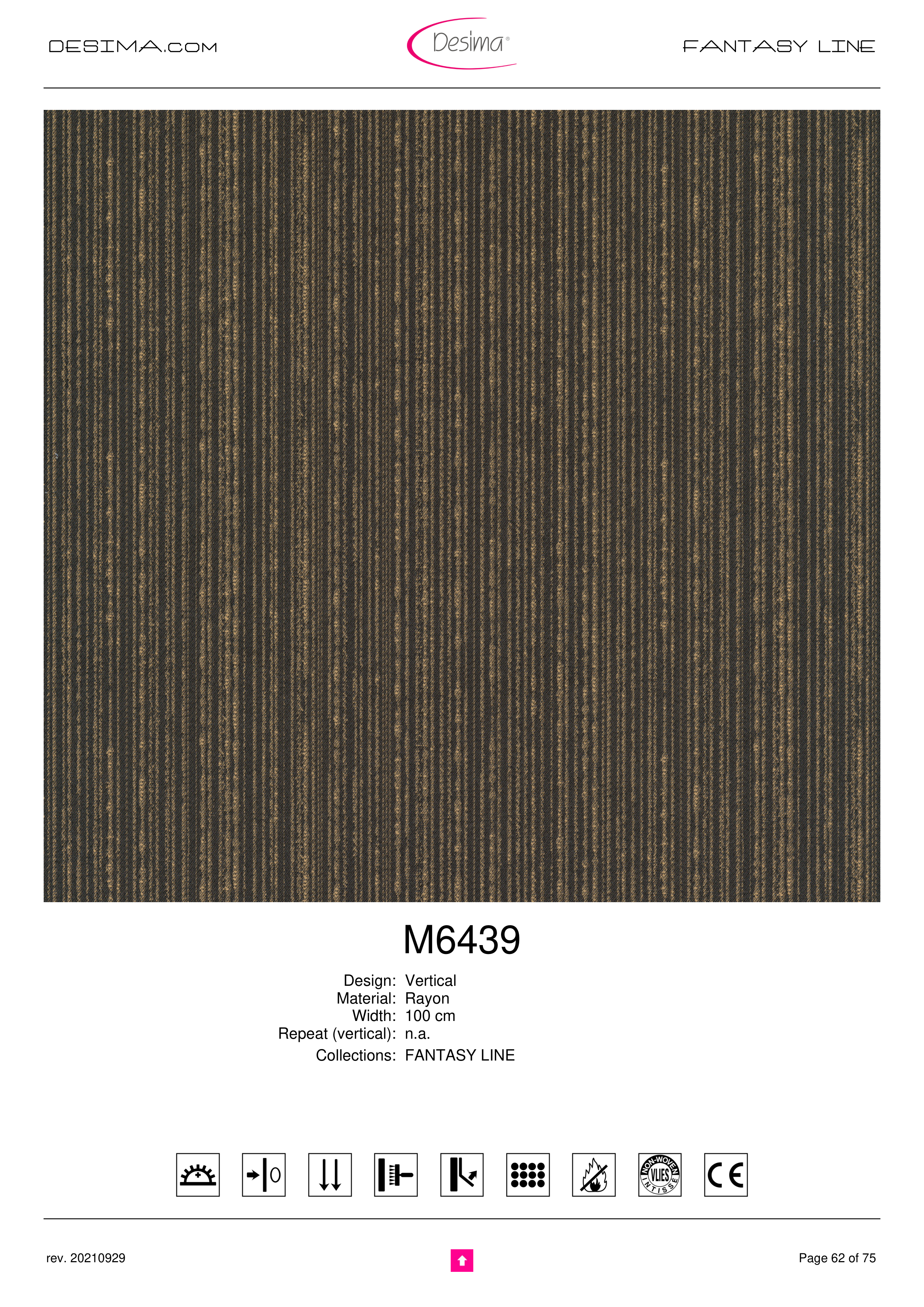 DESIMA.com FANTASY LINE M6439 Design: Vertical Material: Rayon Width: 100 cm Repeat (vertical): n.a. Collections: FANTASY LINE Page 62 of 75 rev. 20210929