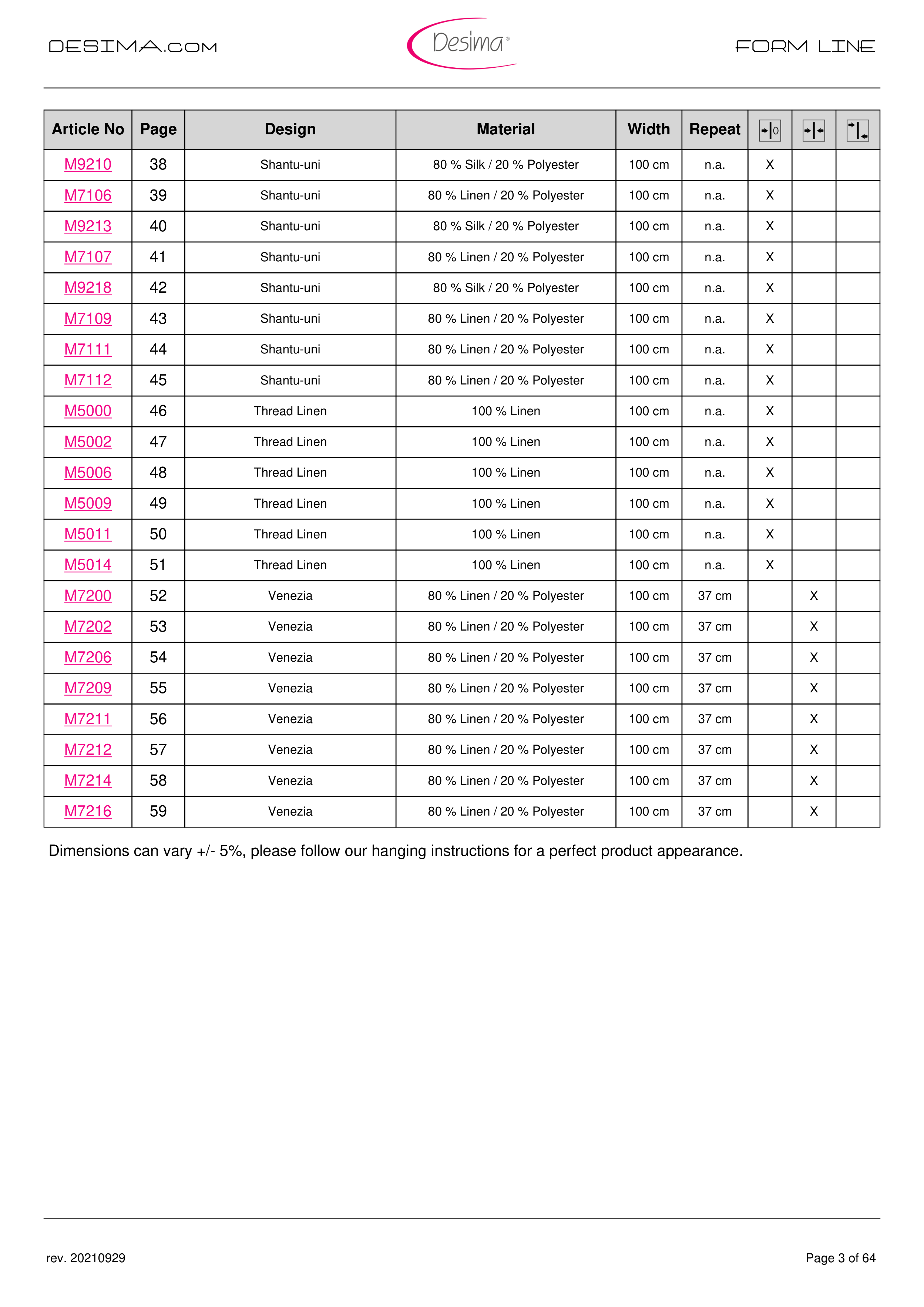 Dimensions can vary +/- 5%, please follow our hanging instructions for a perfect product appearance.