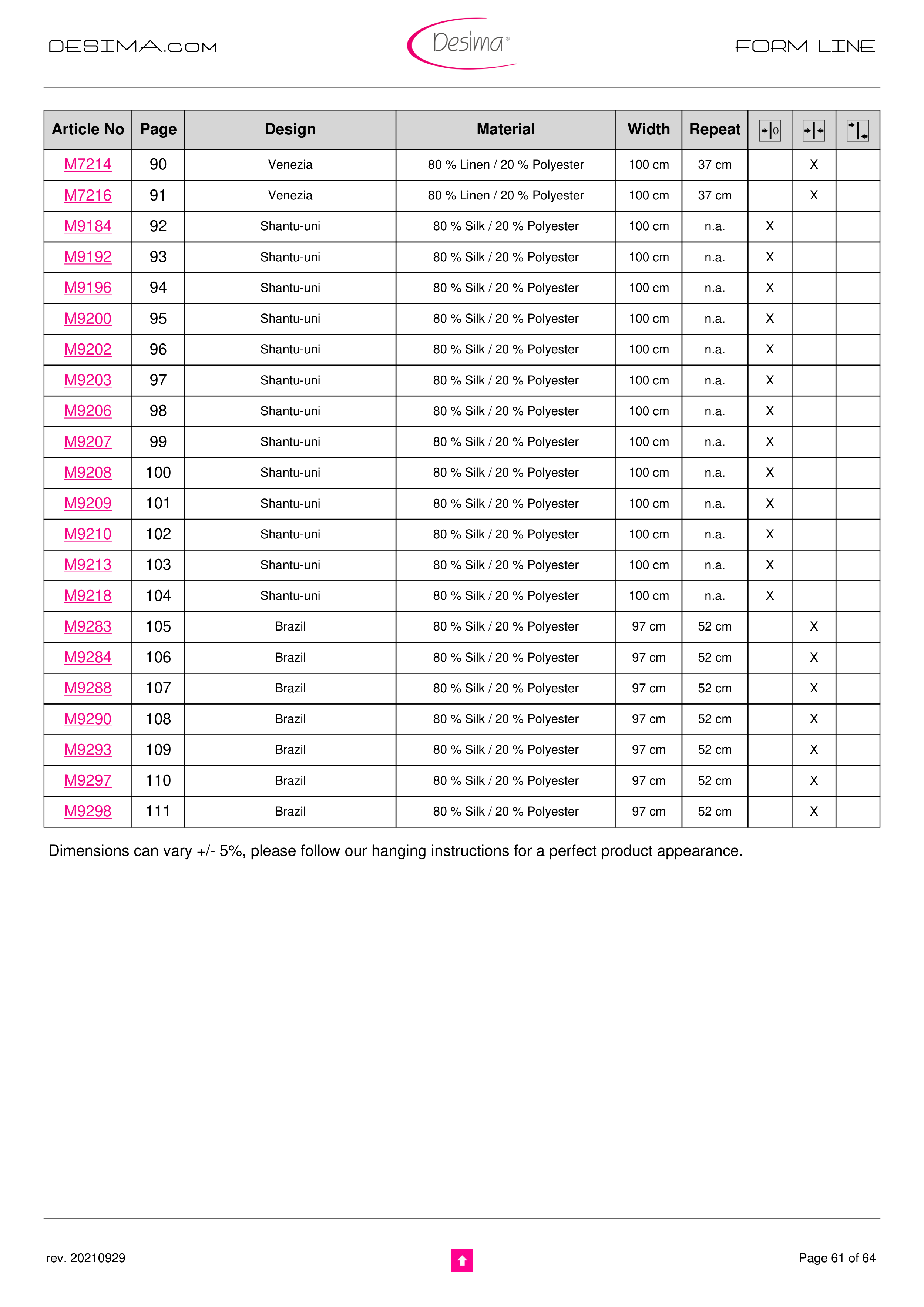 Dimensions can vary +/- 5%, please follow our hanging instructions for a perfect product appearance.