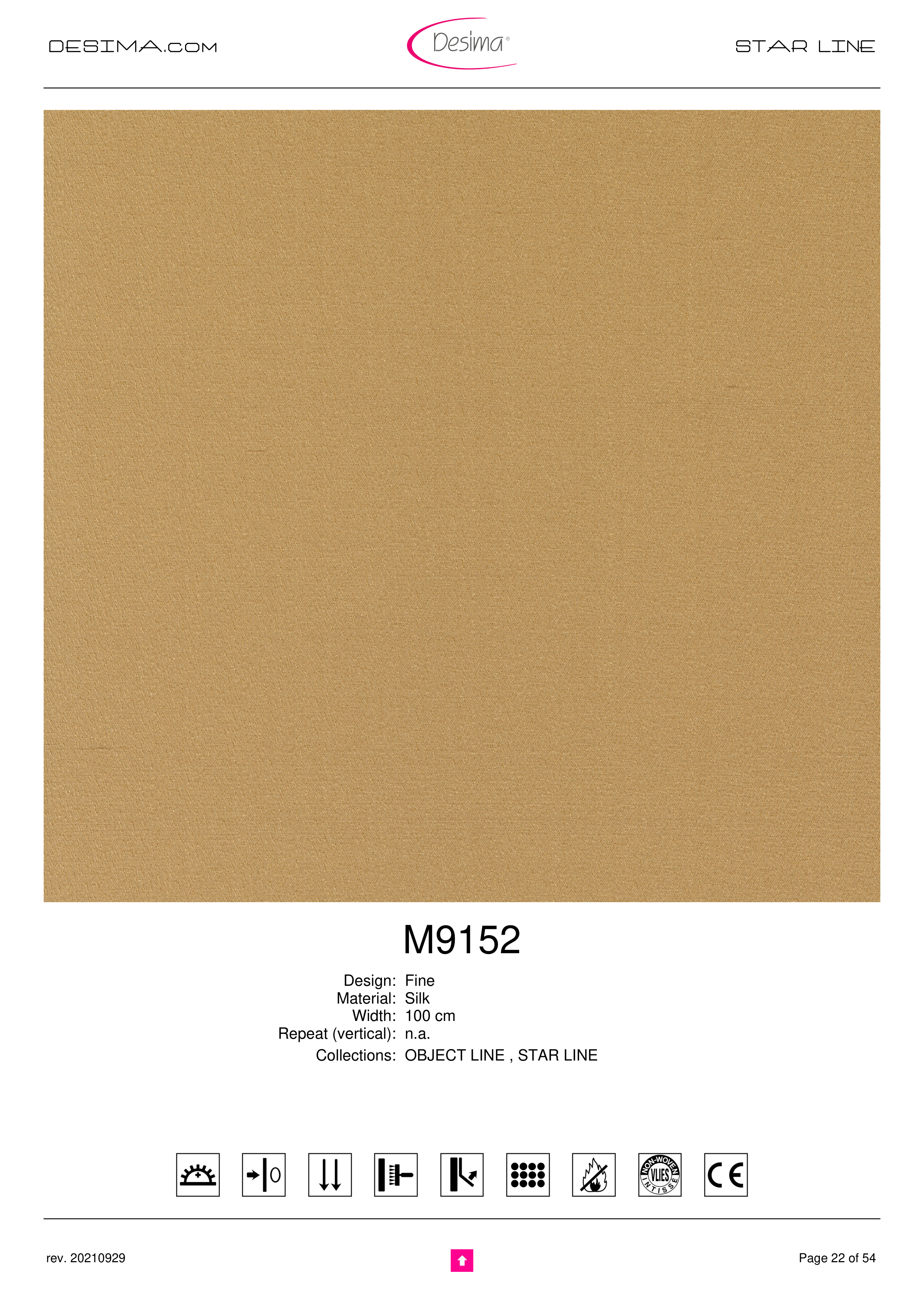 DESIMA.com STAR LINE M9152 Design: Fine Material: Silk Width: 100 cm Repeat (vertical): n.a. Collections: OBJECT LINE , STAR LINE Page 22 of 54 rev. 20210929