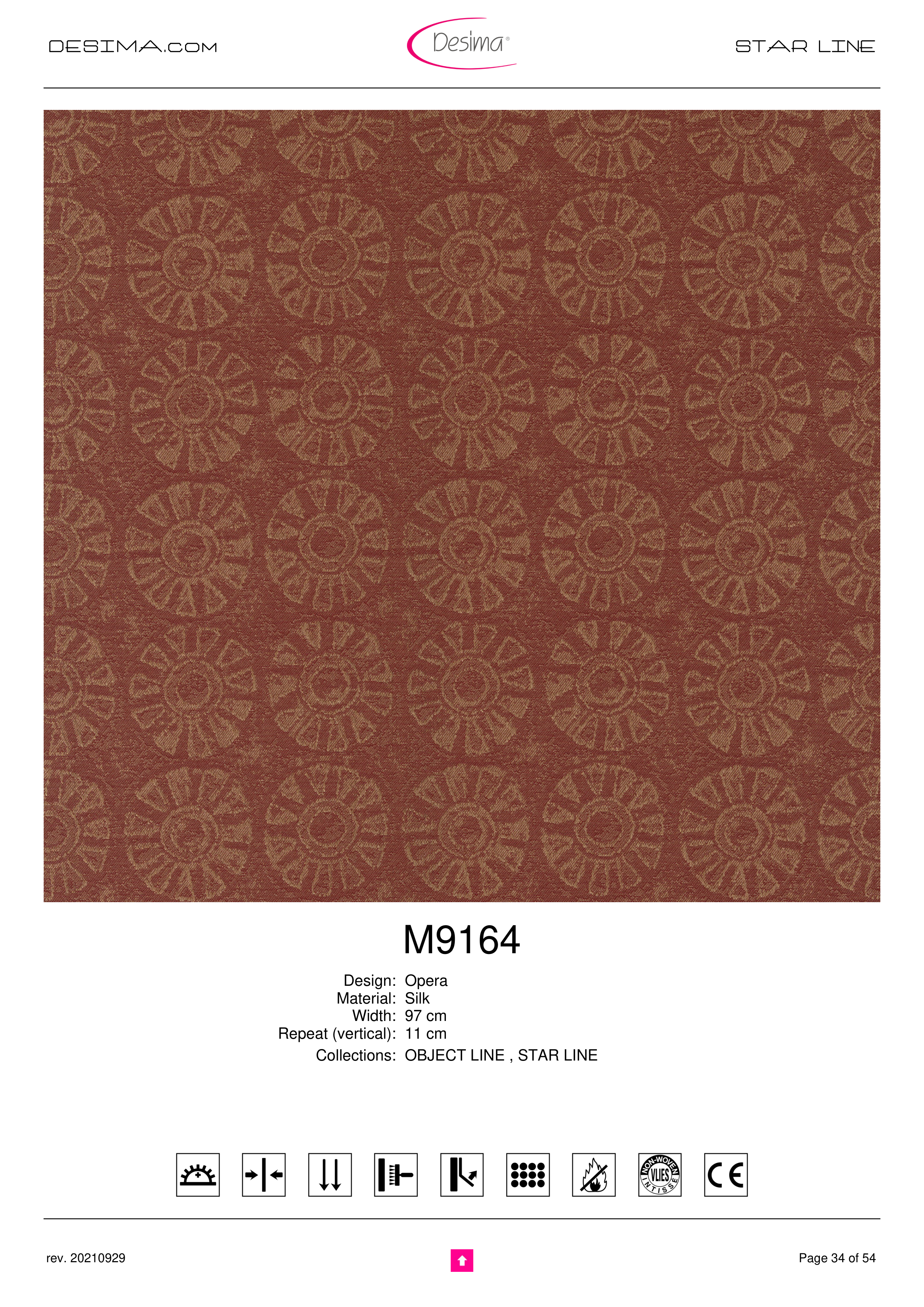 DESIMA.com STAR LINE M9164 Design: Opera Material: Silk Width: 97 cm Repeat (vertical): 11 cm Collections: OBJECT LINE , STAR LINE Page 34 of 54 rev. 20210929