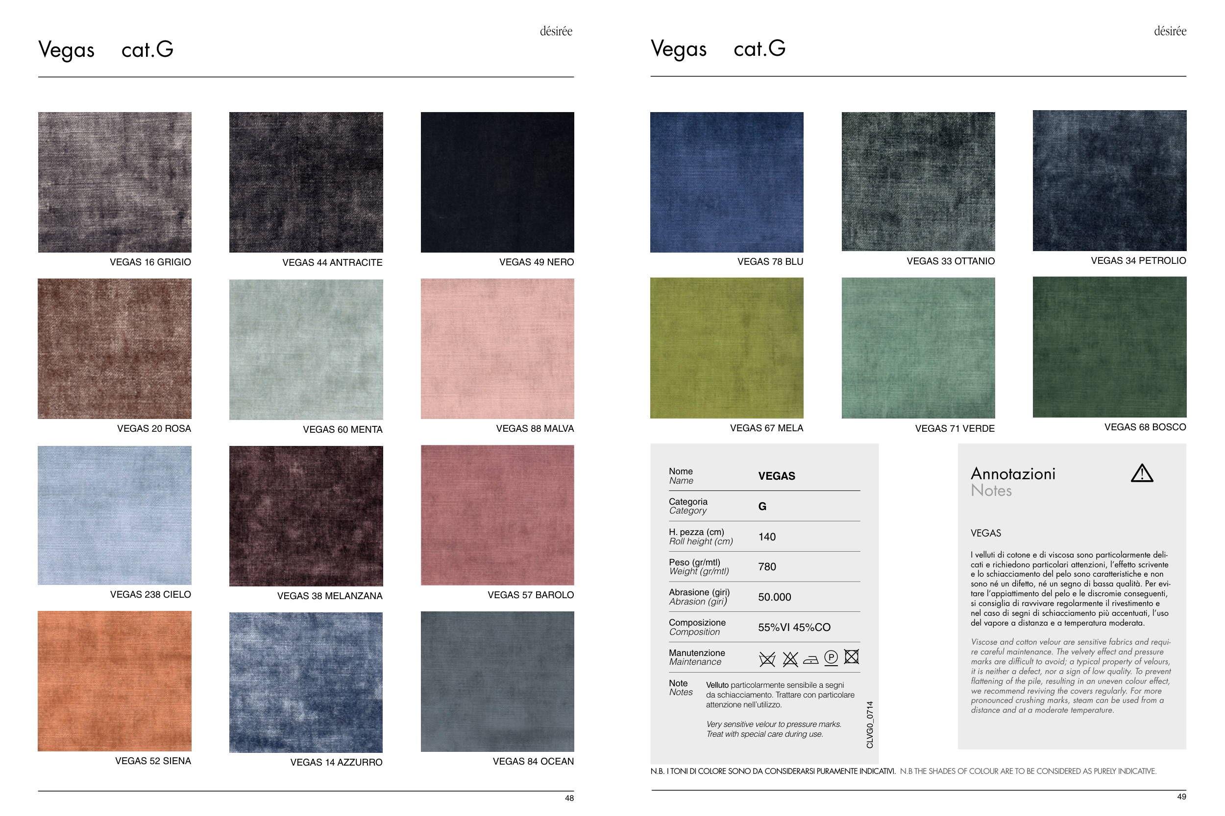 N.B. I TONI DI COLORE SONO DA CONSIDERARSI PURAMENTE INDICATIVI. N.B THE SHADES OF COLOUR ARE TO BE CONSIDERED AS PURELY INDICATIVE.