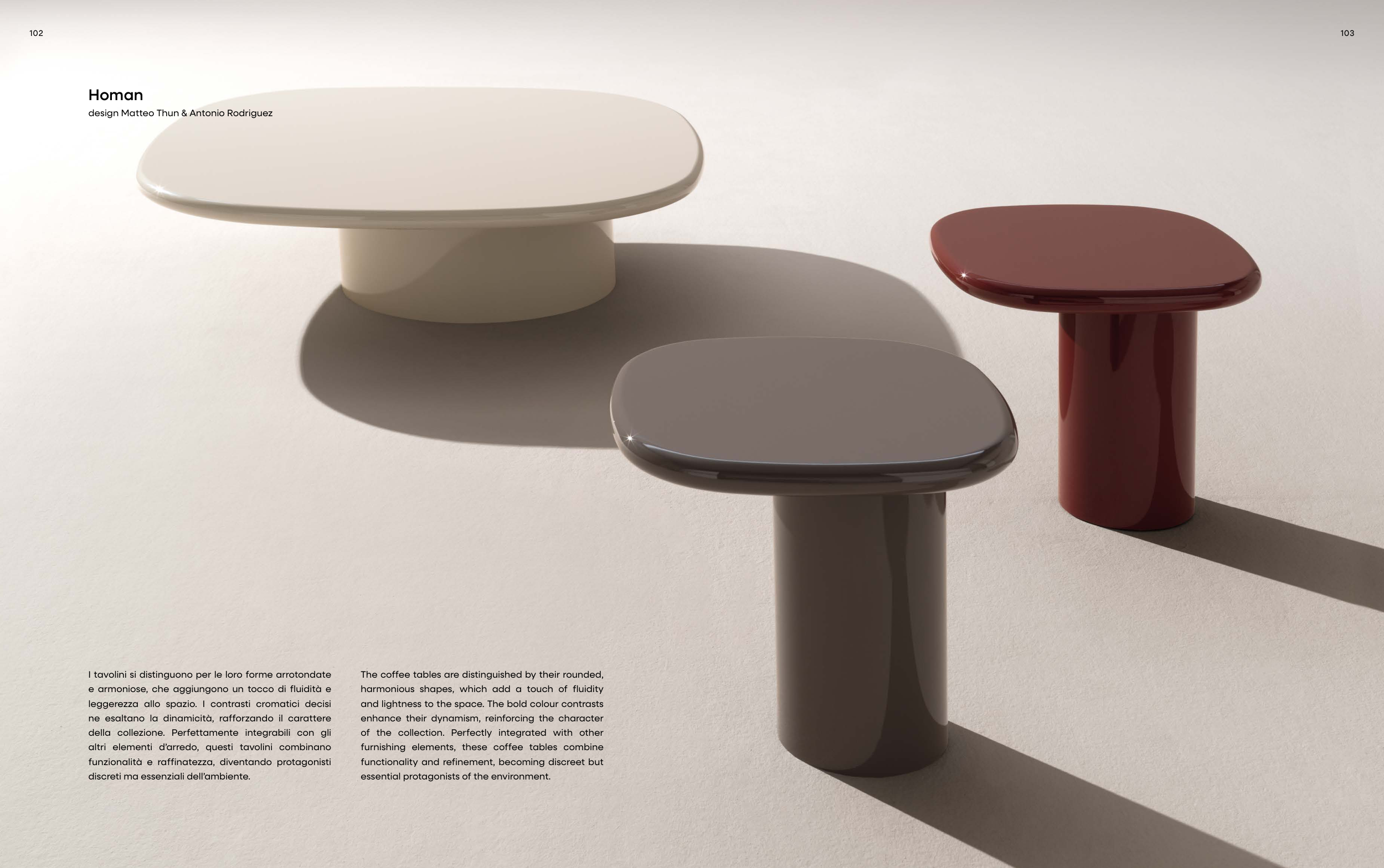 I tavolini si distinguono per le loro forme arrotondate