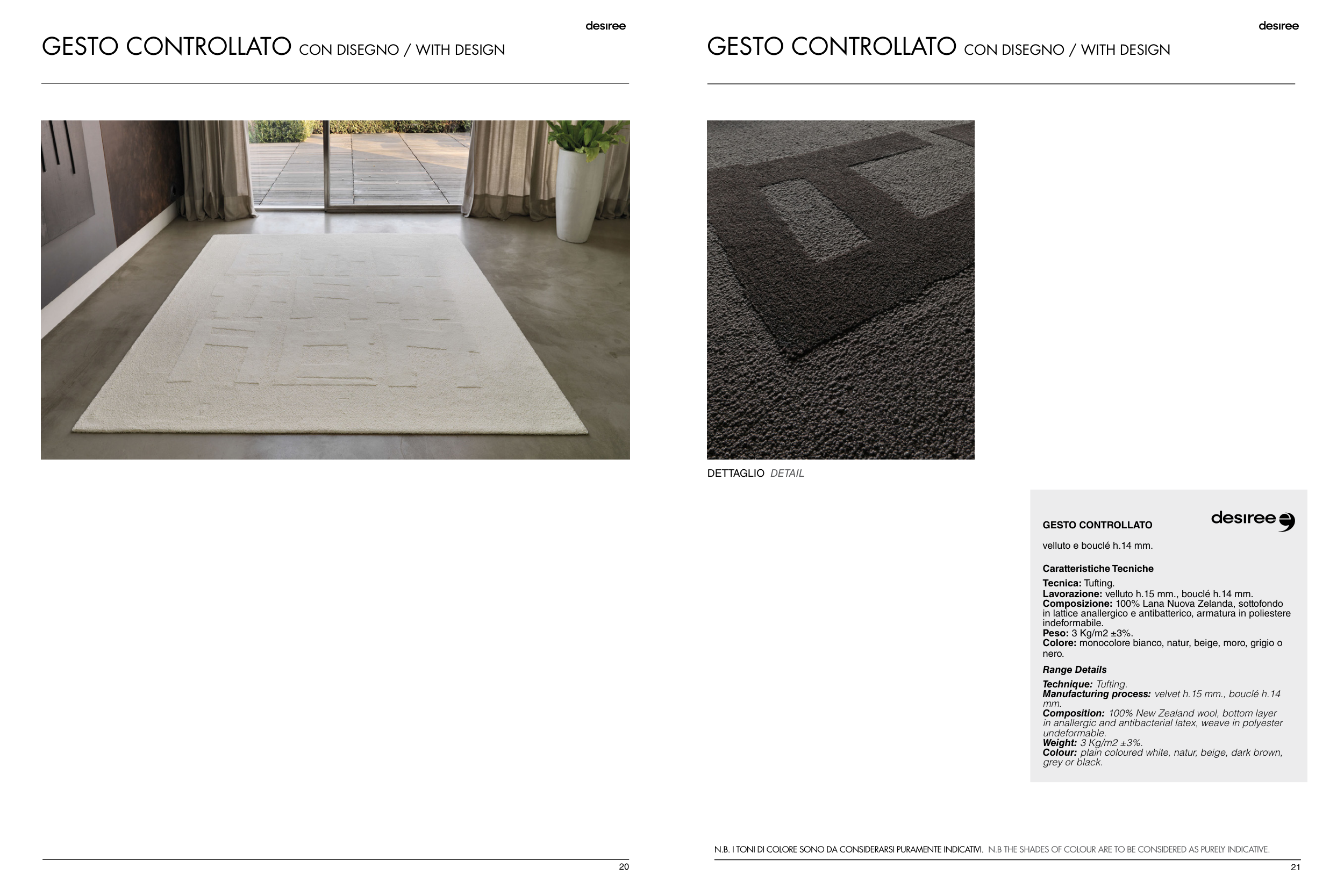 N.B. I TONI DI COLORE SONO DA CONSIDERARSI PURAMENTE INDICATIVI. N.B THE SHADES OF COLOUR ARE TO BE CONSIDERED AS PURELY INDICATIVE.