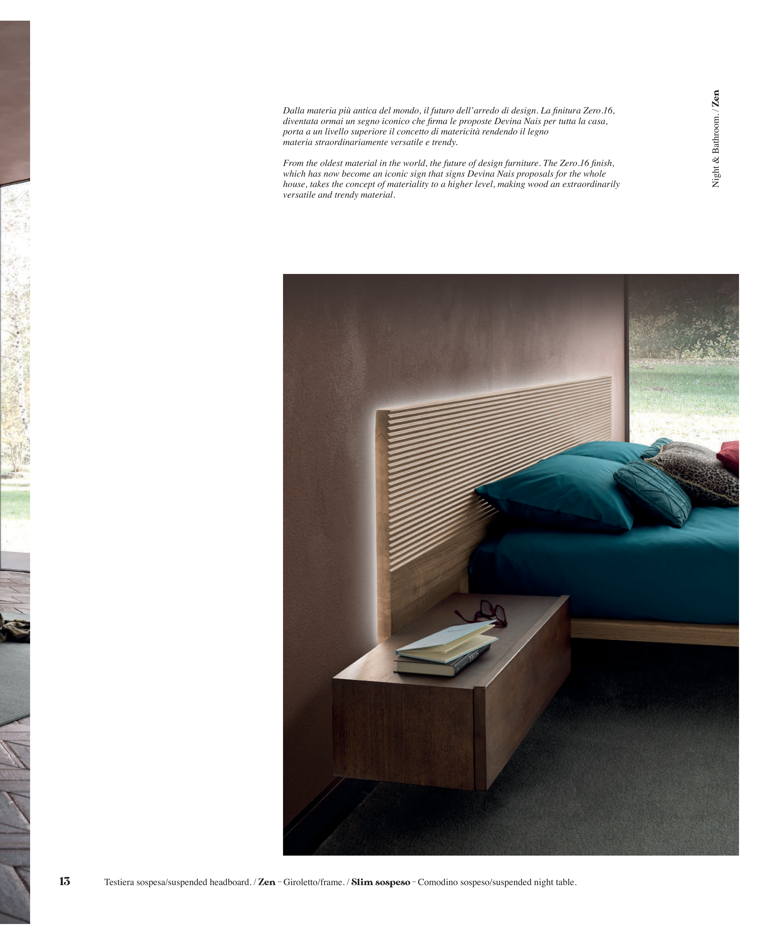 Testiera sospesa/suspended headboard. / Zen - Giroletto/frame. / Slim sospeso - Comodino sospeso/suspended night table.