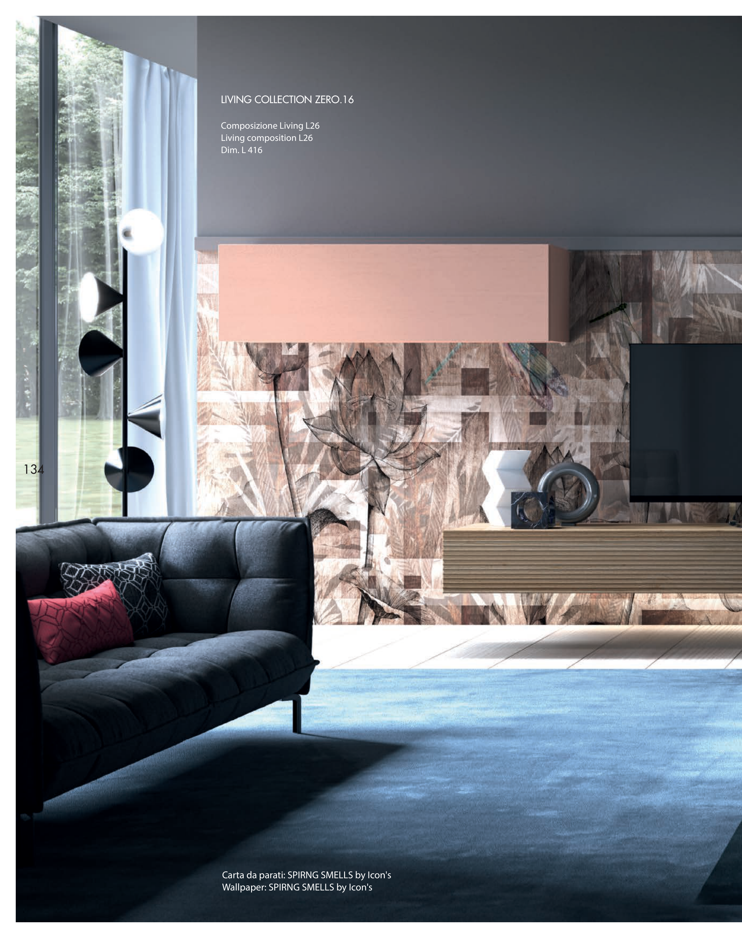 LIVING COLLECTION ZERO.16 Composizione Living L26 Living composition L26 Dim. L 416 Carta da parati: SPIRNG SMELLS by Icon's Wallpaper: SPIRNG SMELLS by Icon's 134