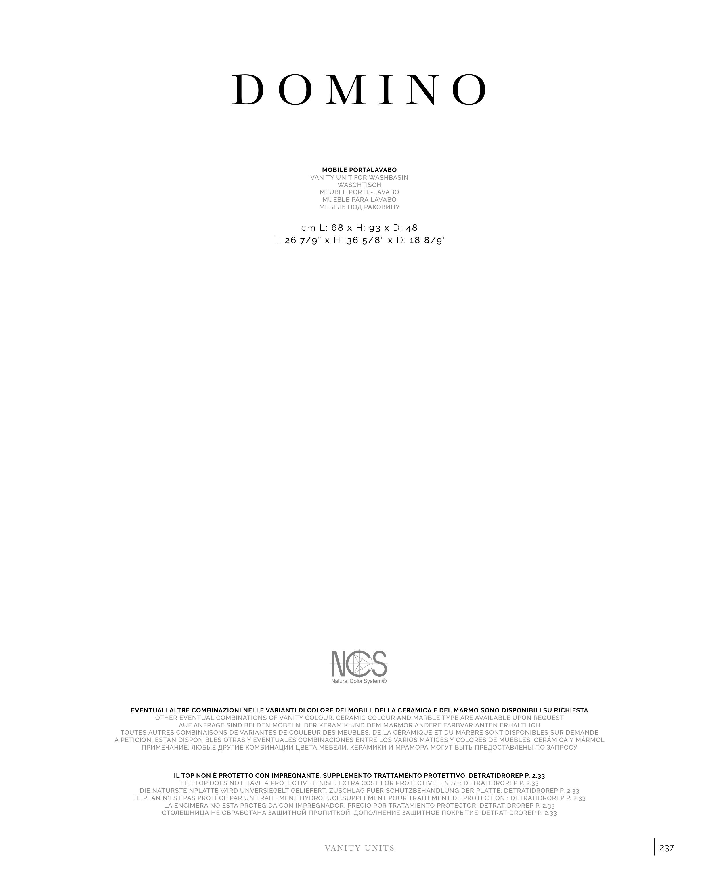 THE TOP DOES NOT HAVE A PROTECTIVE FINISH. EXTRA COST FOR PROTECTIVE FINISH: DETRATIDROREP P. 2.33