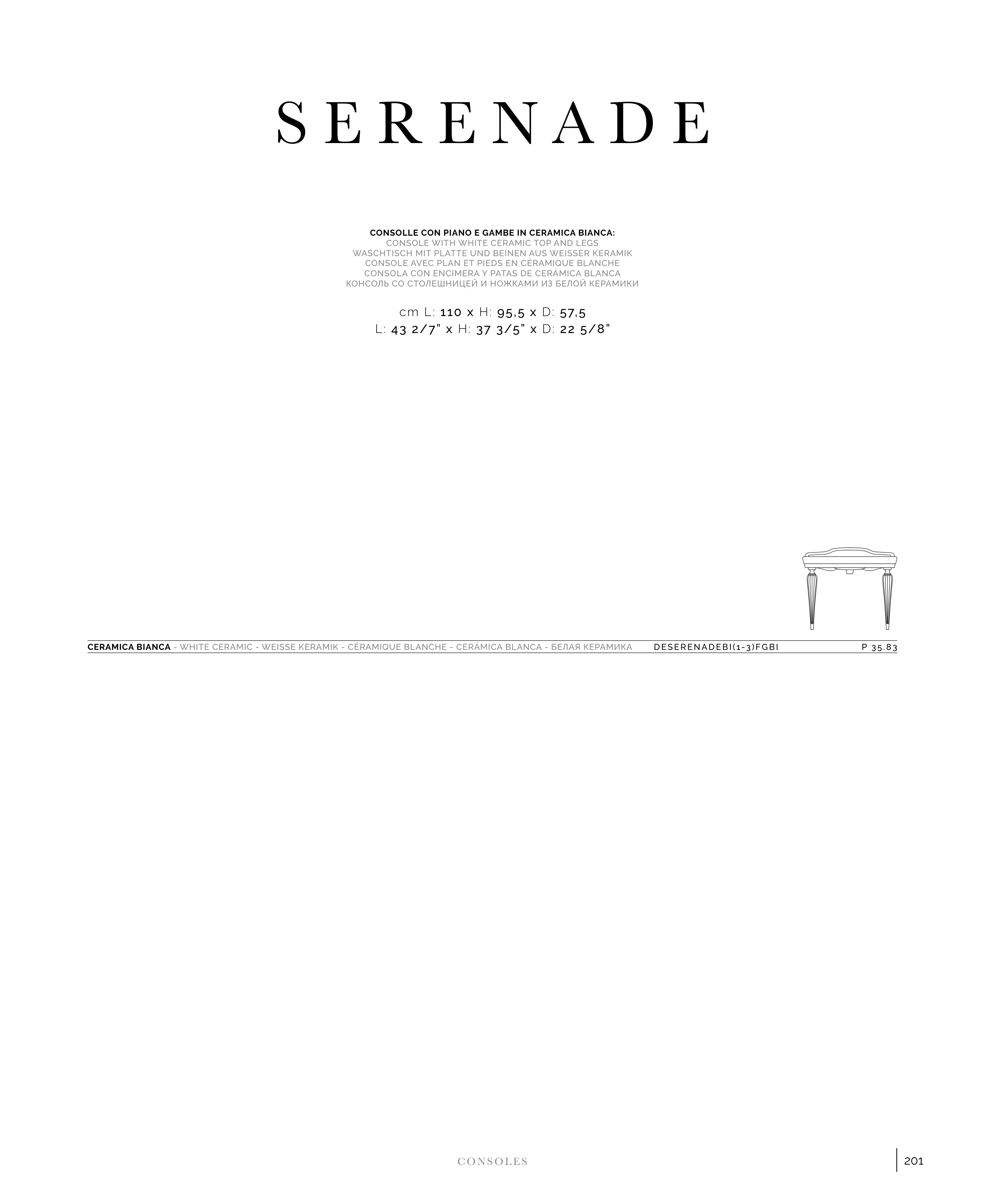 CONSOLE AVEC PLAN ET PIEDS EN CÉRAMIQUE BLANCHE