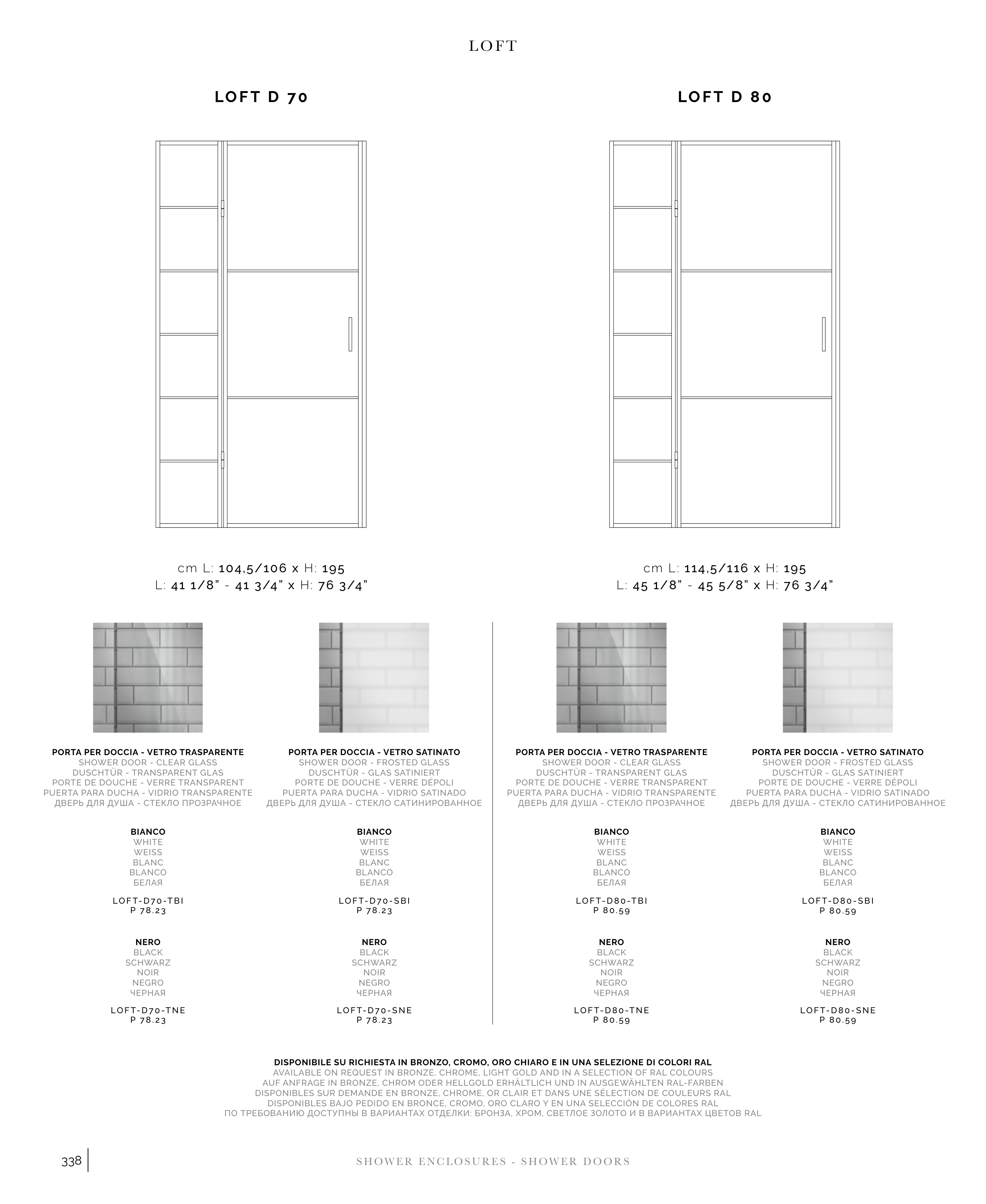 AVAILABLE ON REQUEST IN BRONZE, CHROME, LIGHT GOLD AND IN A SELECTION OF RAL COLOURS