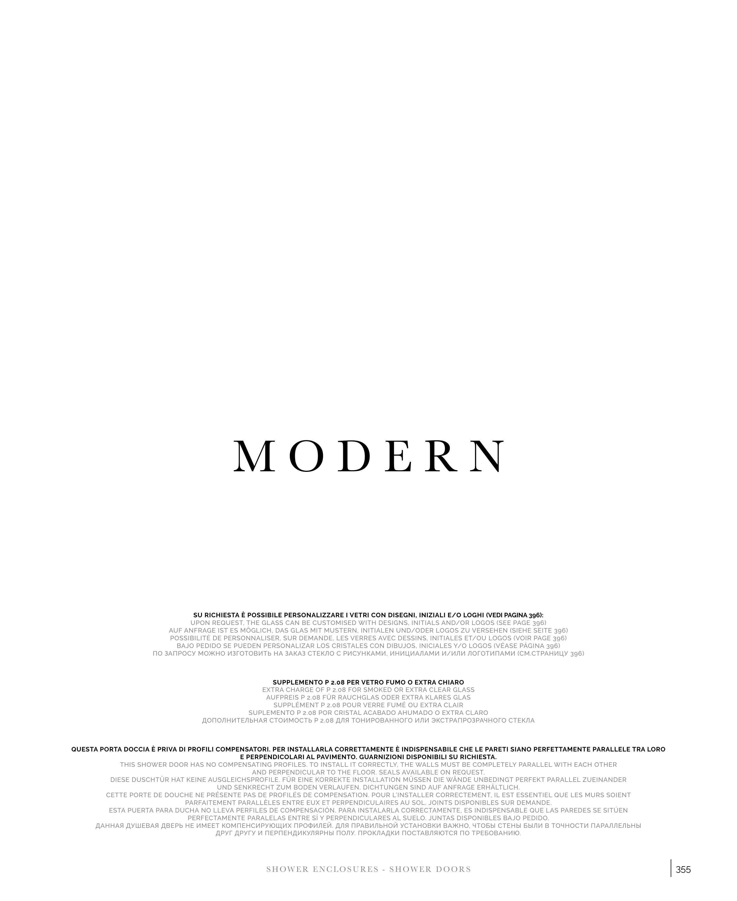 QUESTA PORTA DOCCIA È PRIVA DI PROFILI COMPENSATORI. PER INSTALLARLA CORRETTAMENTE È INDISPENSABILE CHE LE PARETI SIANO PERFETTAMENTE PARALLELE TRA LORO