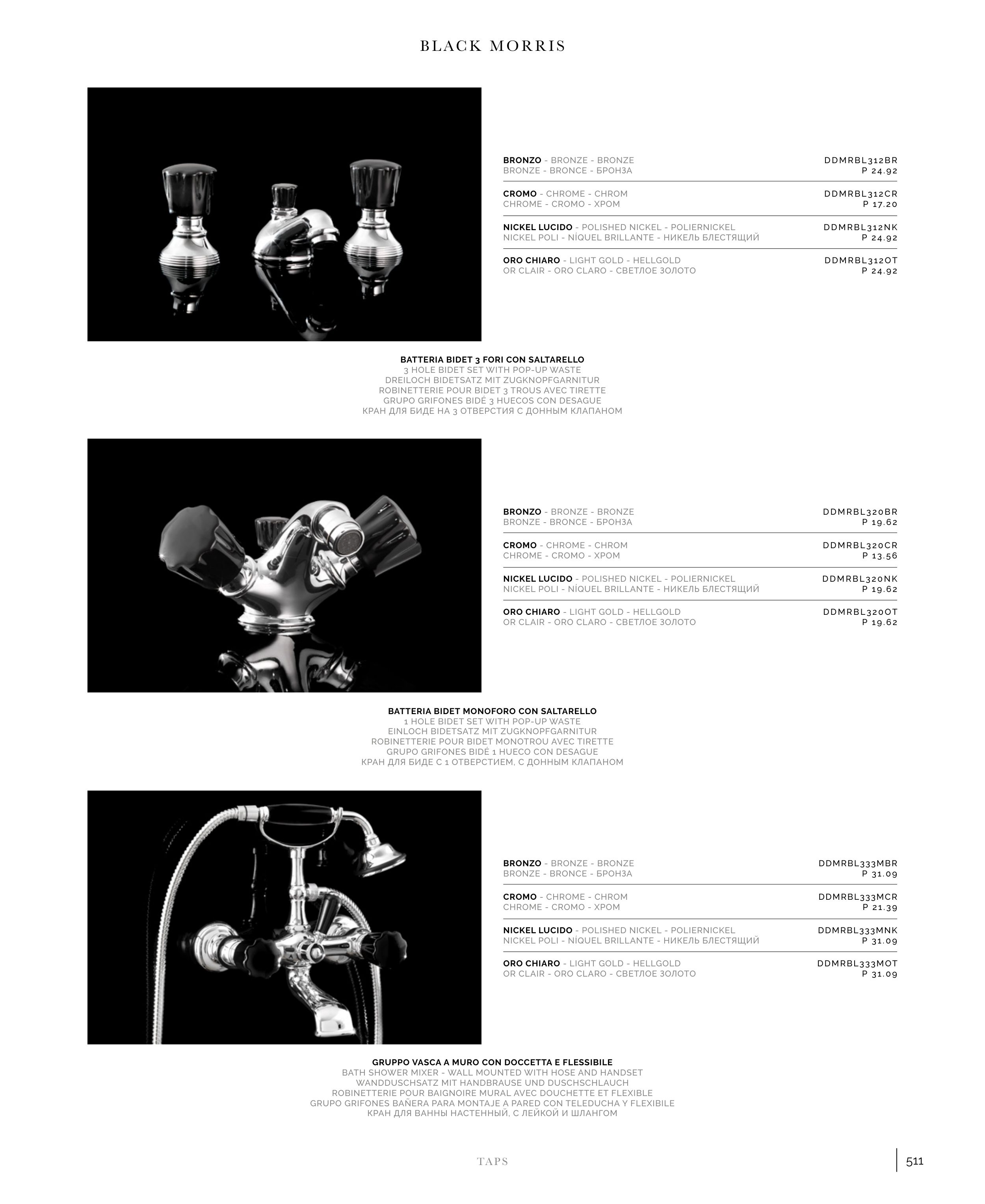ROBINETTERIE POUR BIDET 3 TROUS AVEC TIRETTE