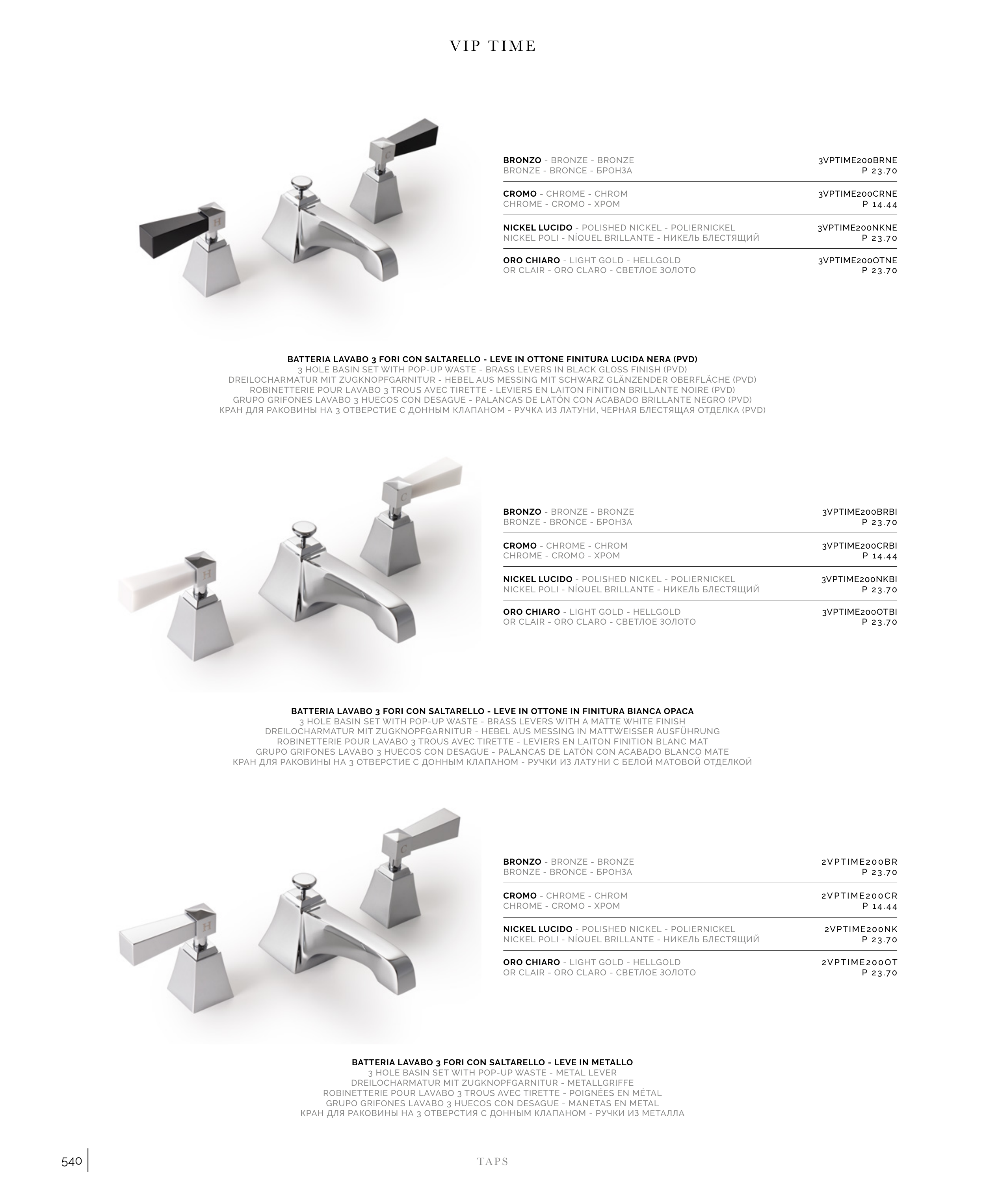 BATTERIA LAVABO 3 FORI CON SALTARELLO - LEVE IN METALLO