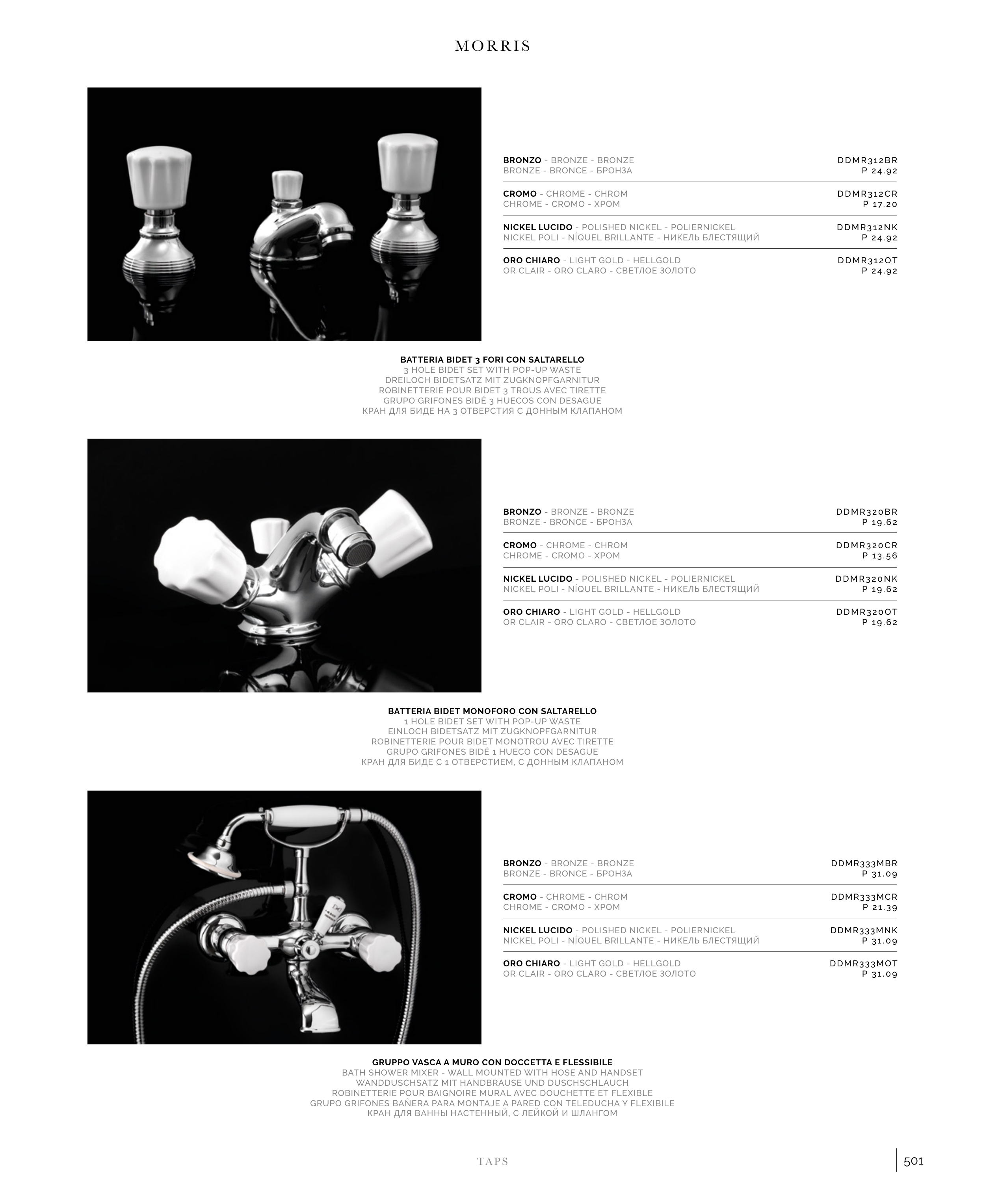 ROBINETTERIE POUR BIDET 3 TROUS AVEC TIRETTE