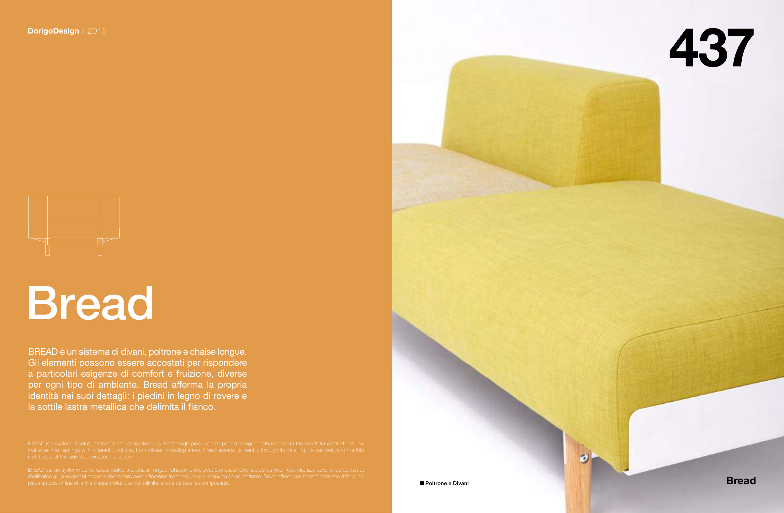 BREAD is a system of sofas, armchairs and chaise longues. Each single piece can be placed alongside others to meet the needs for comfort and use