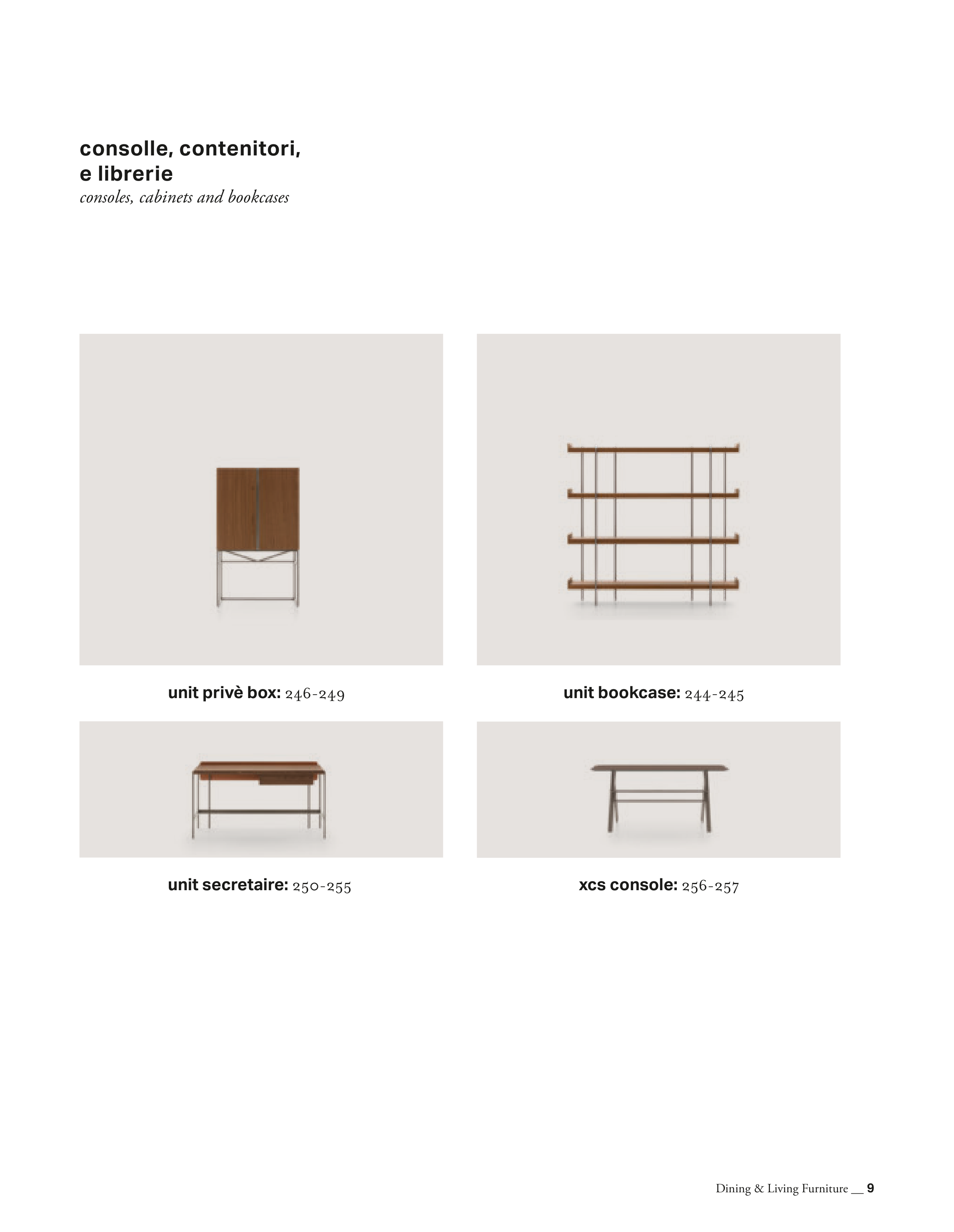 consoles, cabinets and bookcases