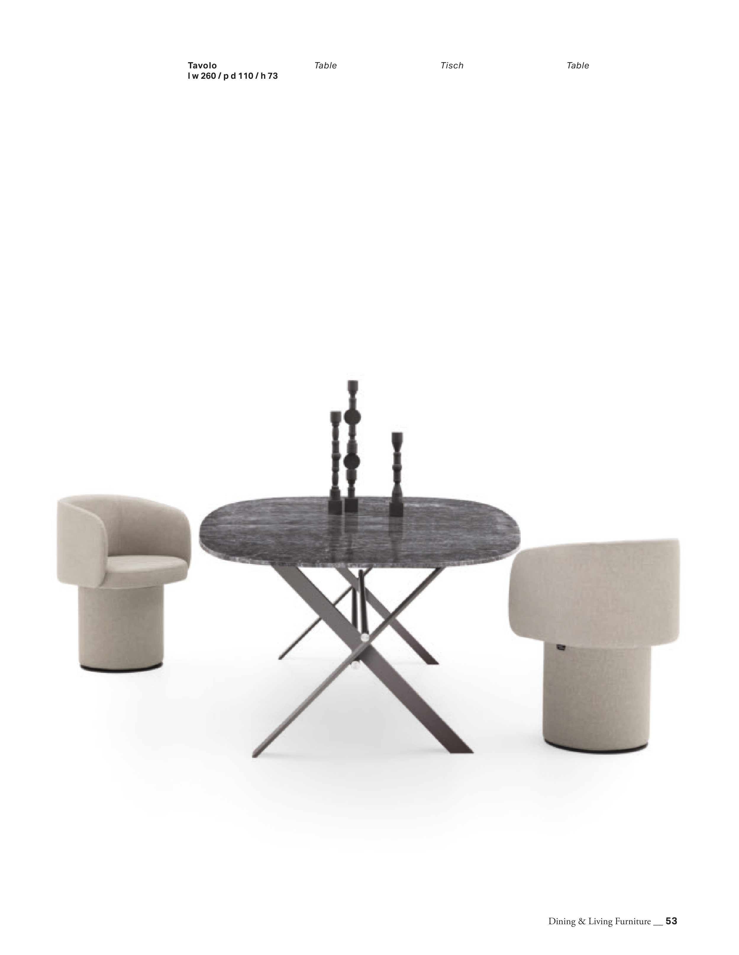 Dining & Living Furniture __ 53 Tavolo l w 260 / p d 110 / h 73 Table Table Tisch complementi 2023.indd 53 complementi 2023.indd 53 21/06/23 11:59 21/06/23 11:59