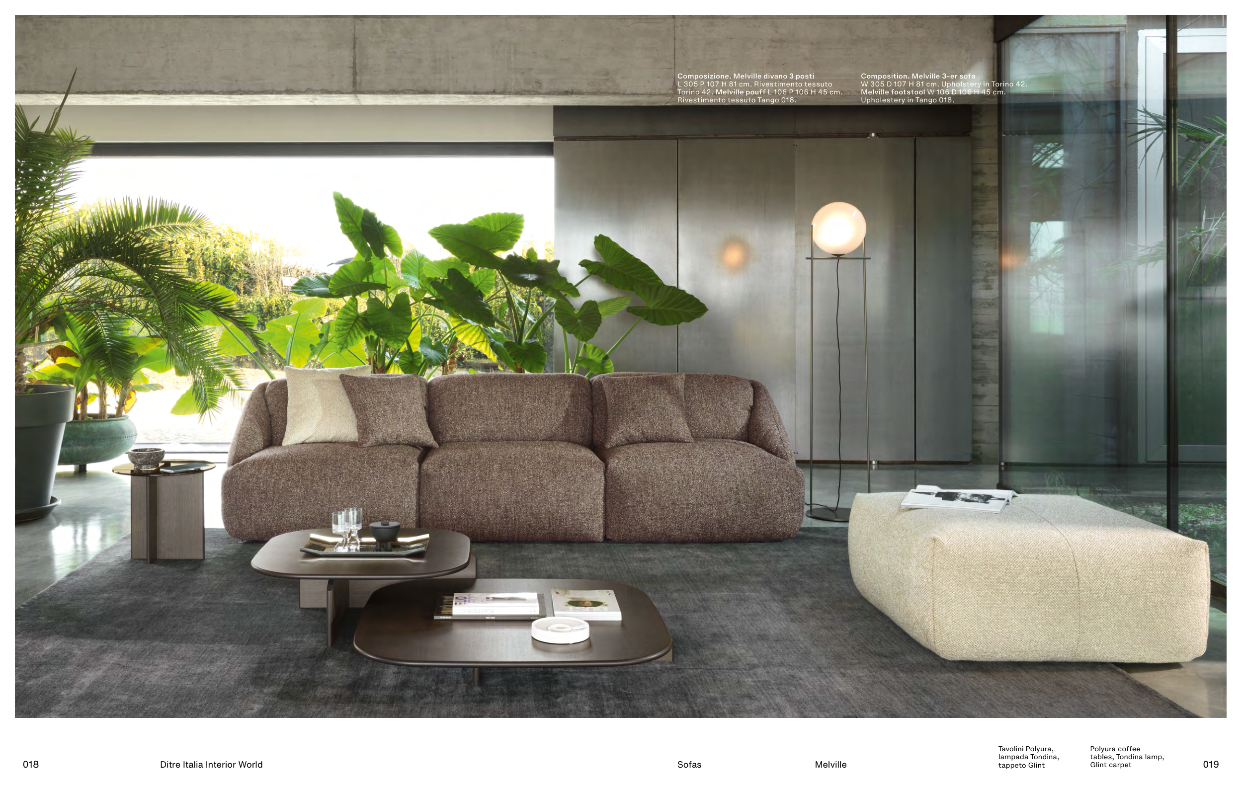 W 305 D 107 H 81 cm. Upholstery in Torino 42.