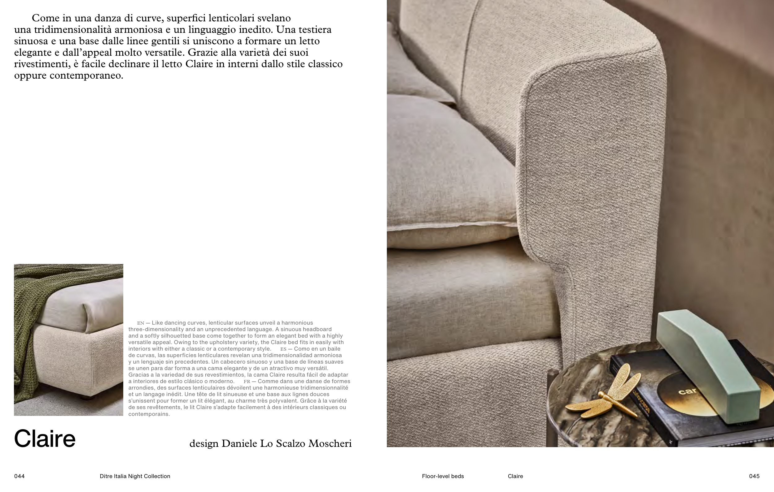 three-dimensionality and an unprecedented language. A sinuous headboard