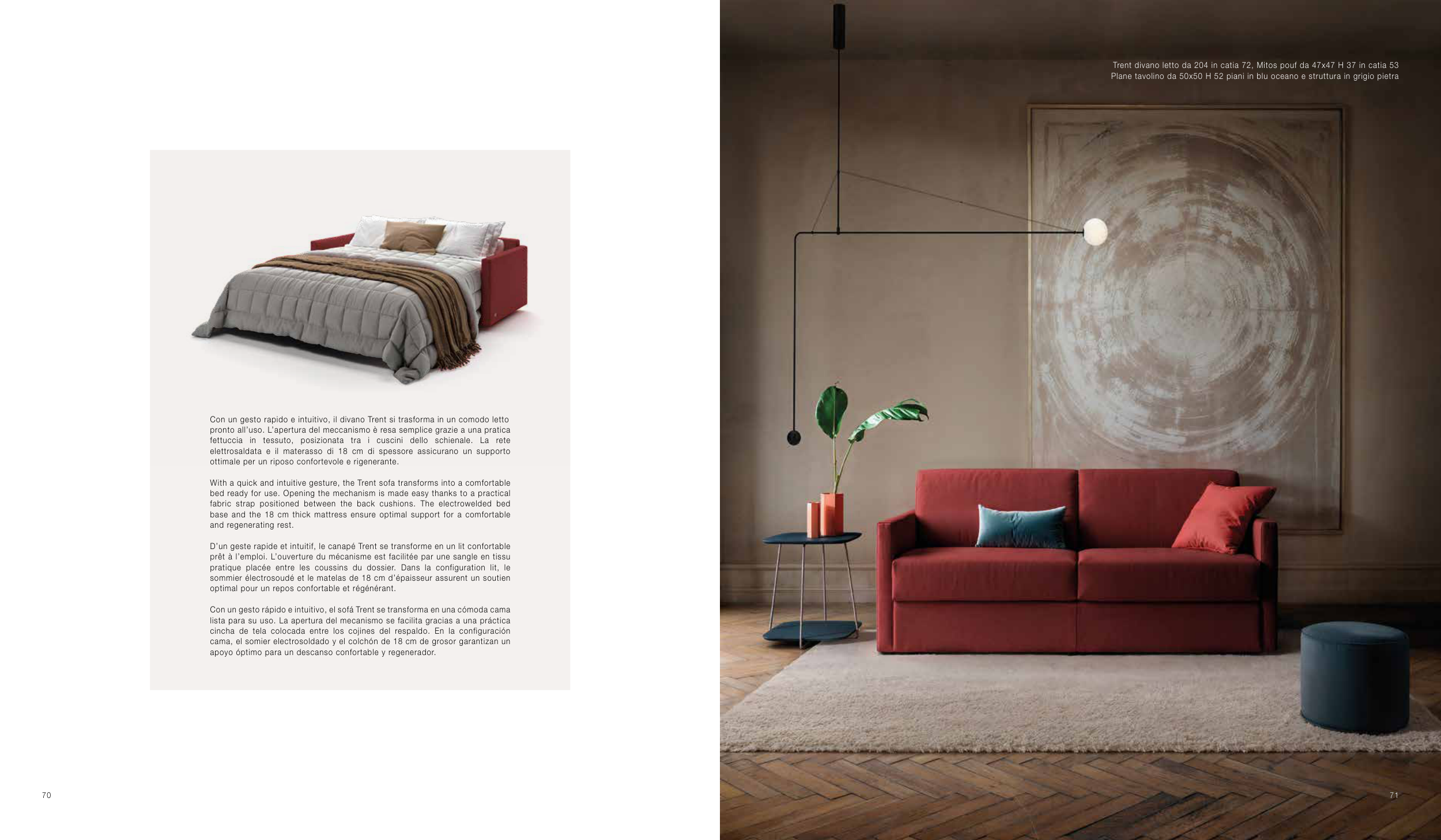 Con un gesto rapido e intuitivo, il divano Trent si trasforma in un comodo letto