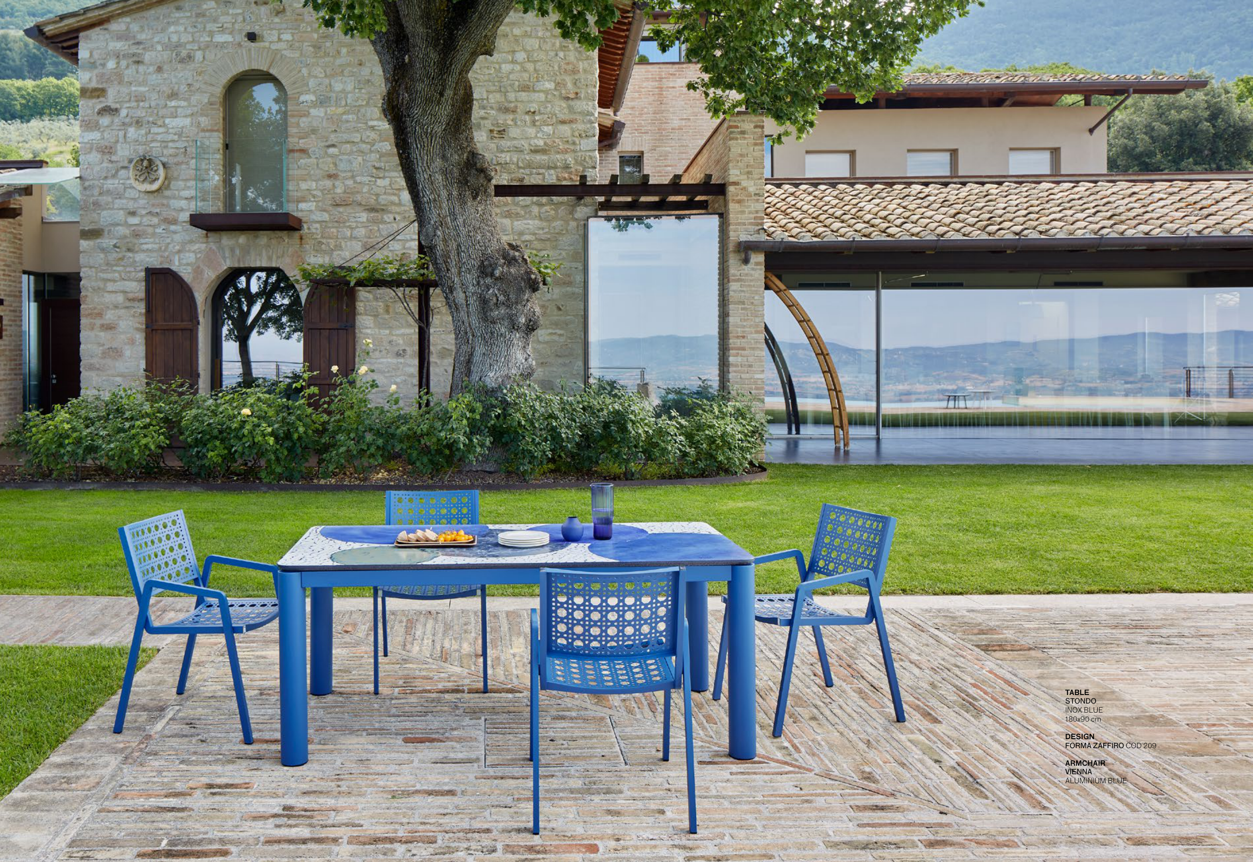 262 263 C O N T E M P O R A R Y TA B L E S TA V O L O S T O N D O TABLE STONDO INOX BLUE 180x90 cm DESIGN FORMA ZAFFIRO COD 209 ARMCHAIR VIENNA ALUMINIUM BLUE