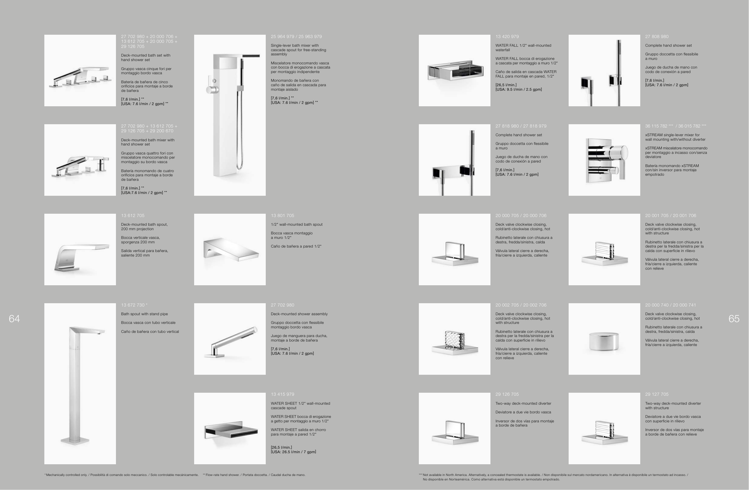 * Mechanically controlled only. / Possibilità di comando solo meccanico. / Solo controlable mecánicamente. ** Flowrate hand shower. / Portata doccetta. / Caudal ducha de mano.
