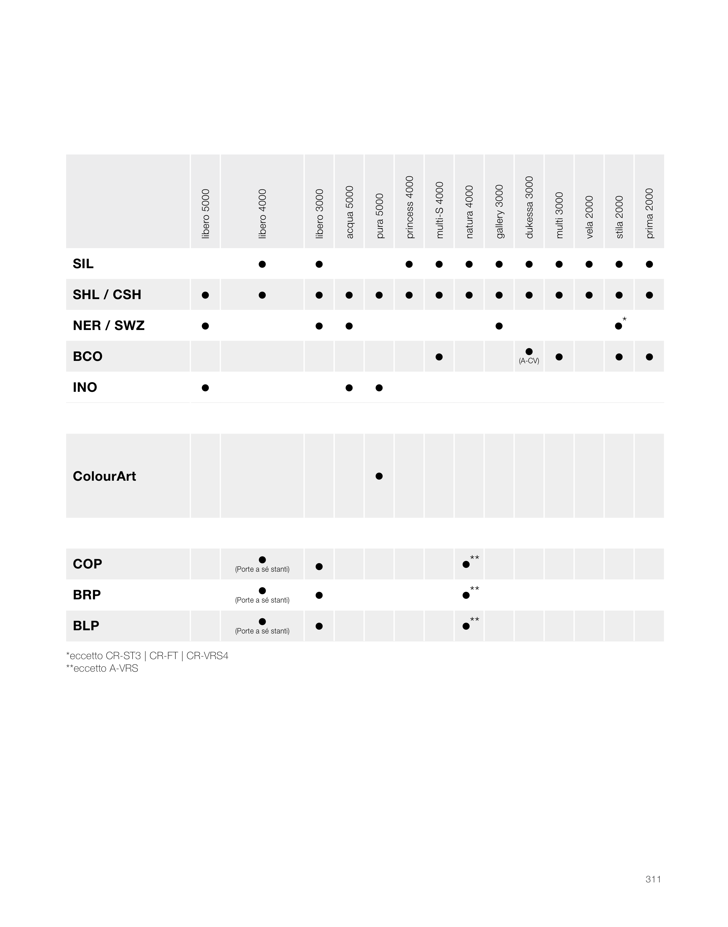 *eccetto CR-ST3 | CR-FT | CR-VRS4
