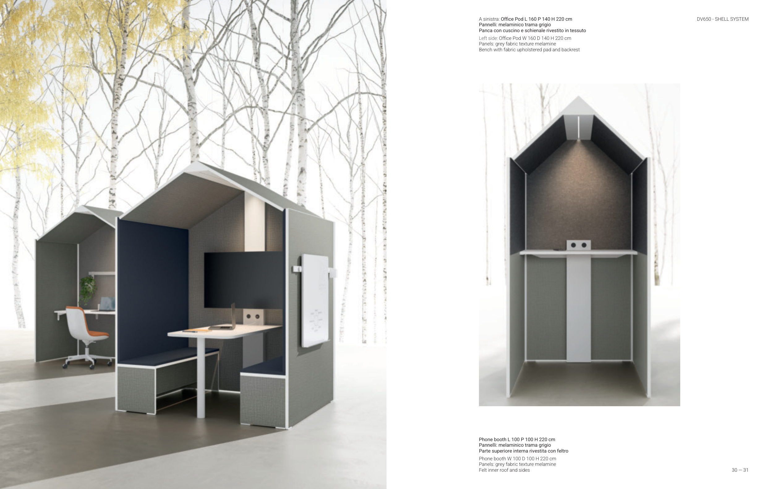 A sinistra: Office Pod L 160 P 140 H 220 cm