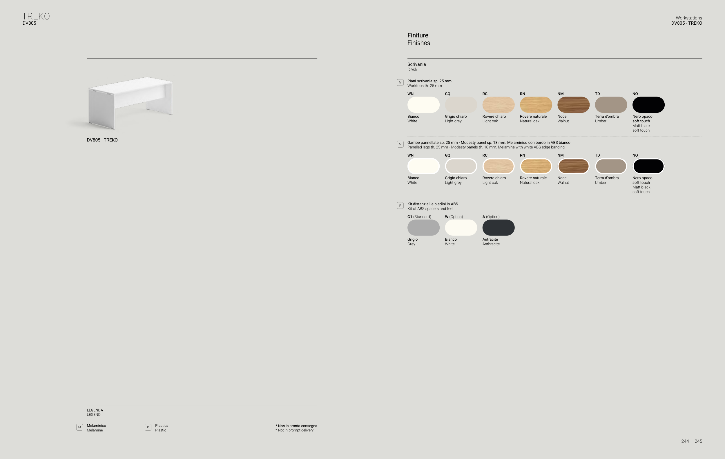 Panelled legs th. 25 mm - Modesty panels th. 18 mm. Melamine with white ABS edge banding