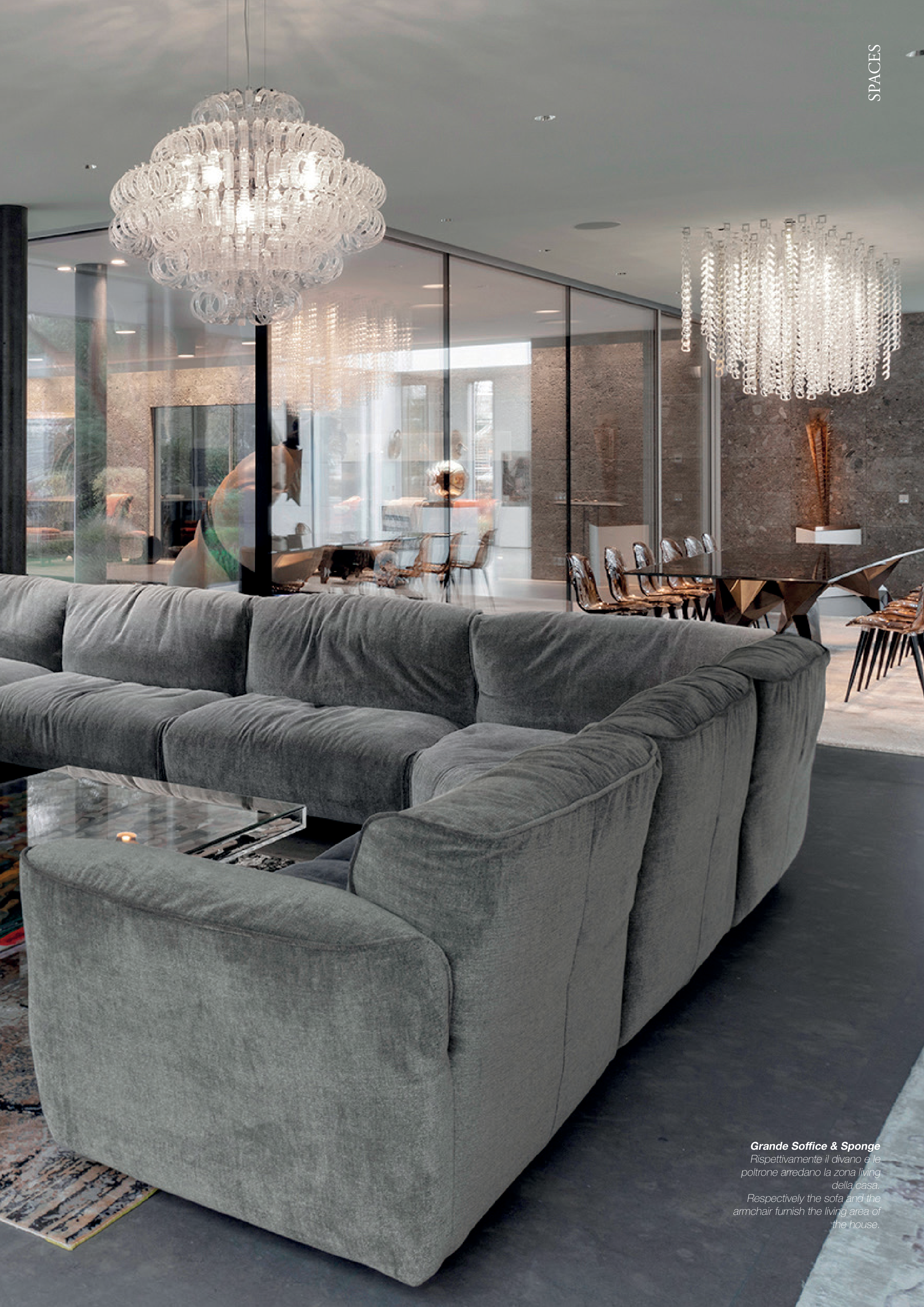 91 Grande Soffice & Sponge Rispettivamente il divano e le poltrone arredano la zona living della casa. Respectively the sofa and the armchair furnish the living area of the house. SPACES