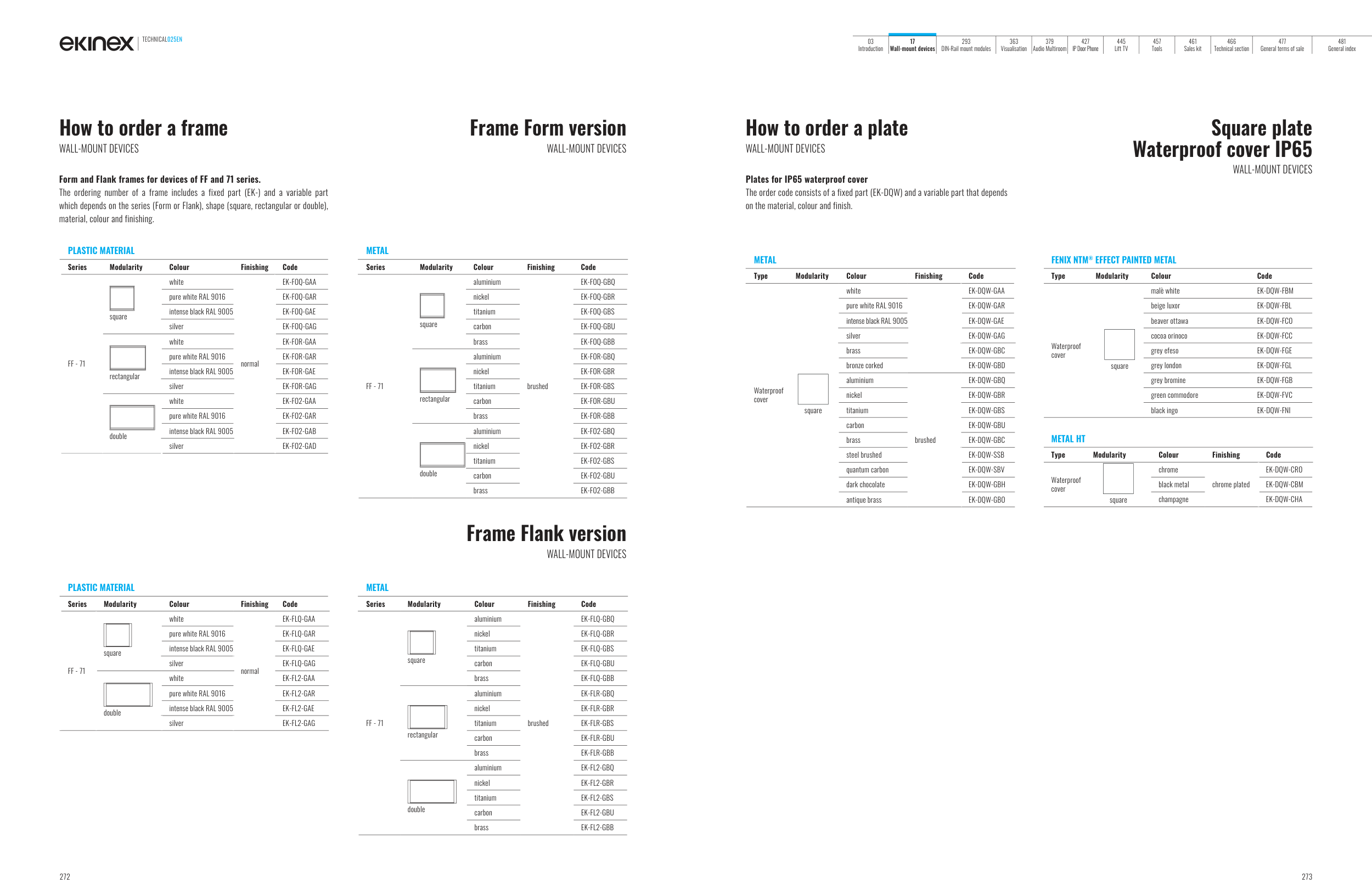 Form and Flank frames for devices of FF and 71 series.