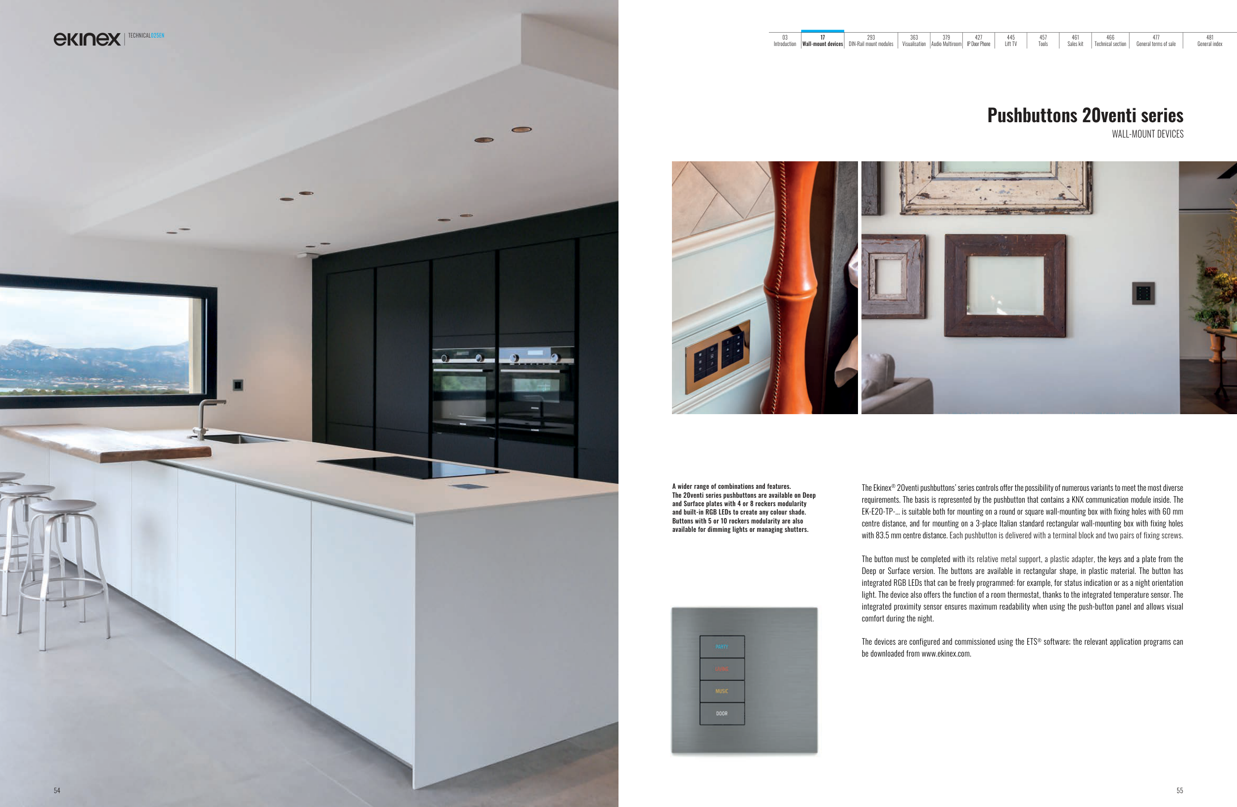 The Ekinex® 20venti pushbuttons’ series controls offer the possibility of numerous variants to meet the most diverse