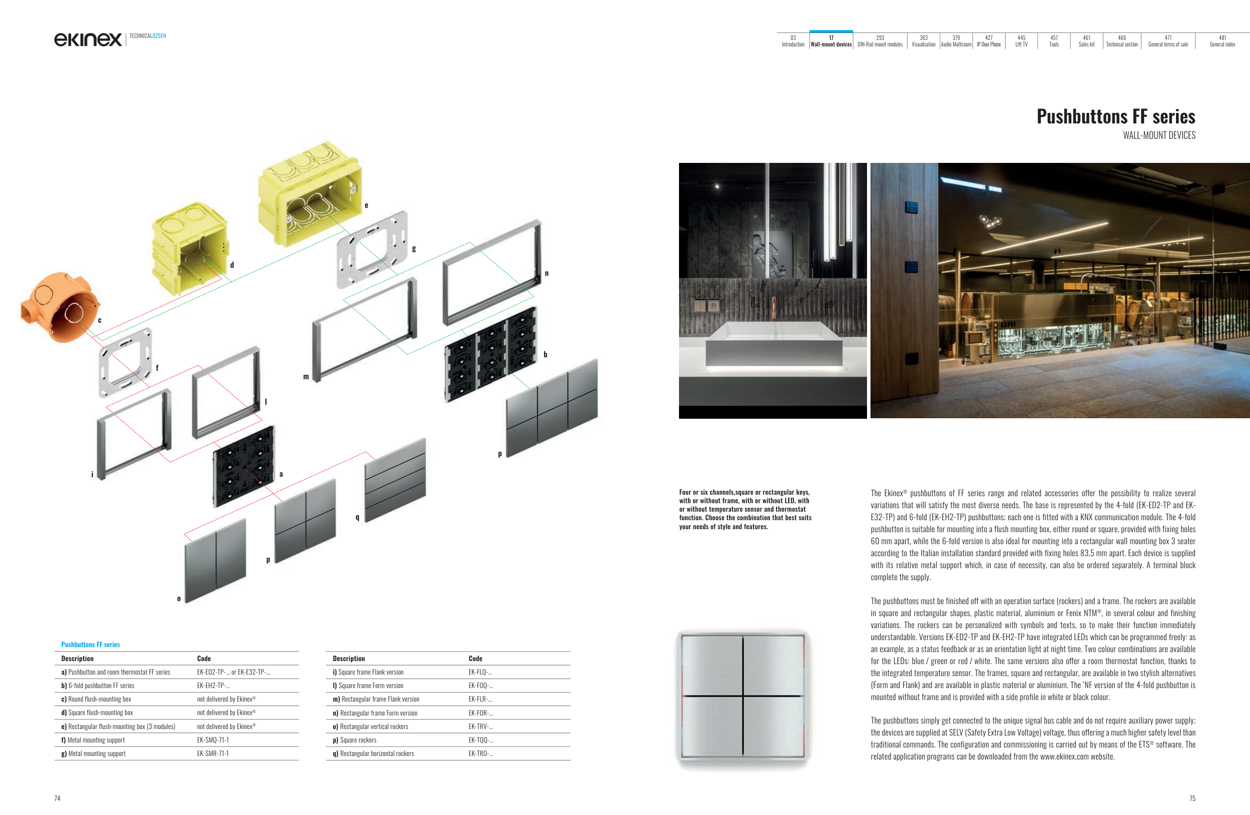 The Ekinex® pushbuttons of FF series range and related accessories offer the possibility to realize several