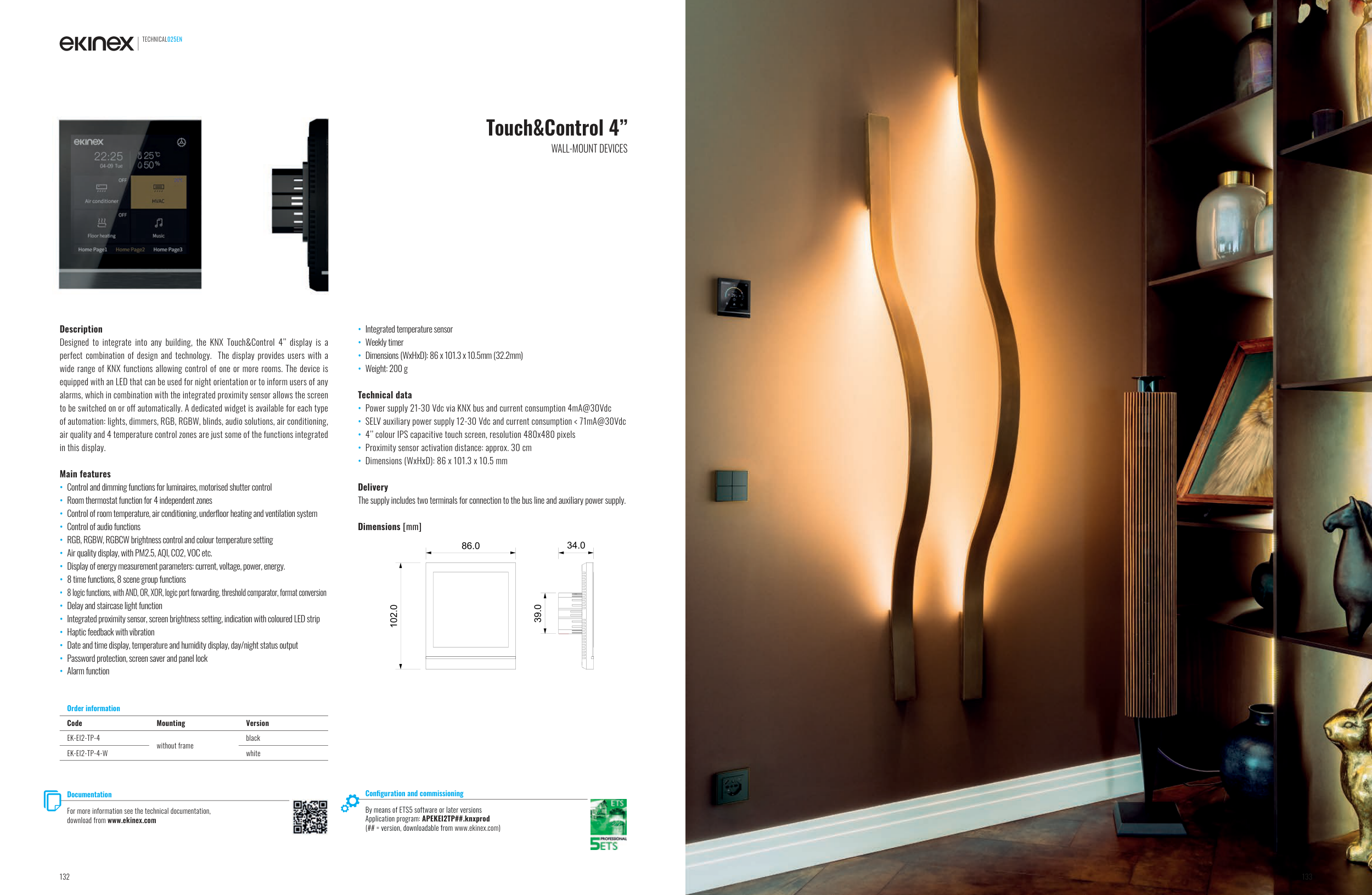 wide range of KNX functions allowing control of one or more rooms. The device is