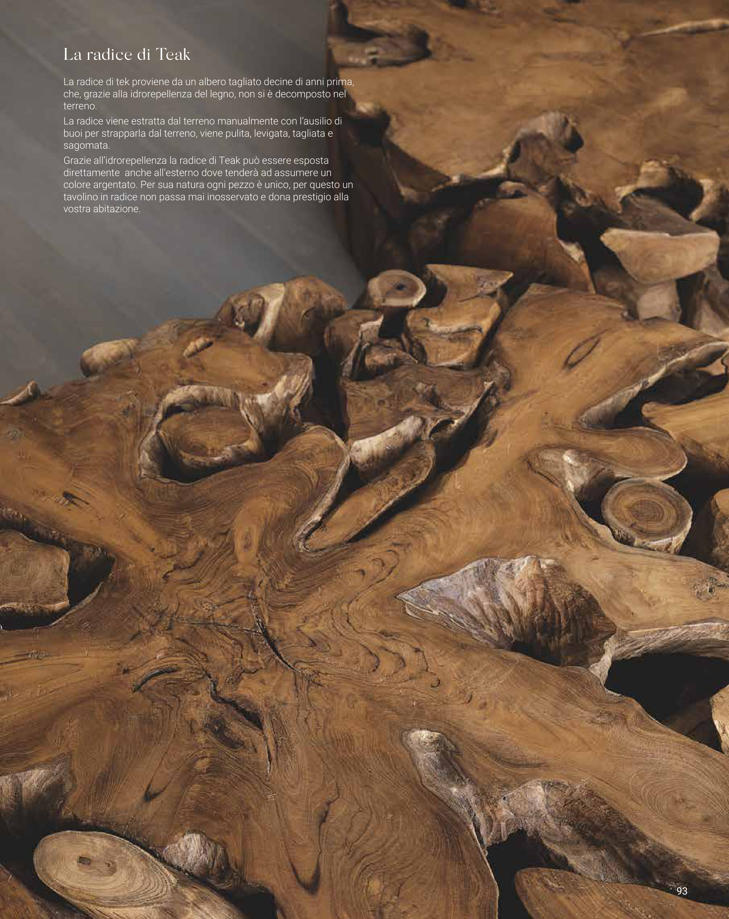 Grazie all’idrorepellenza la radice di Teak può essere esposta