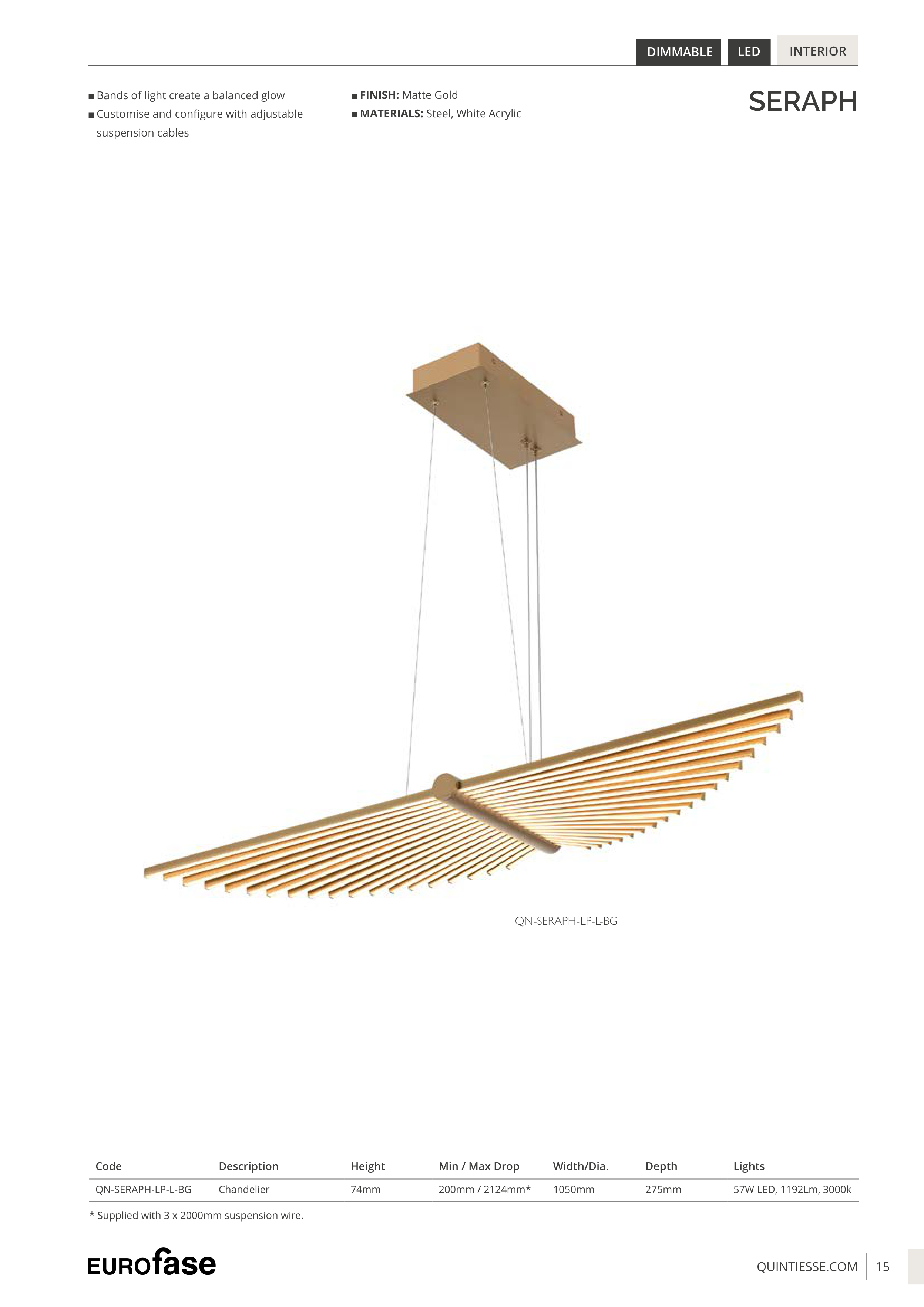 * Supplied with 3 x 2000mm suspension wire.