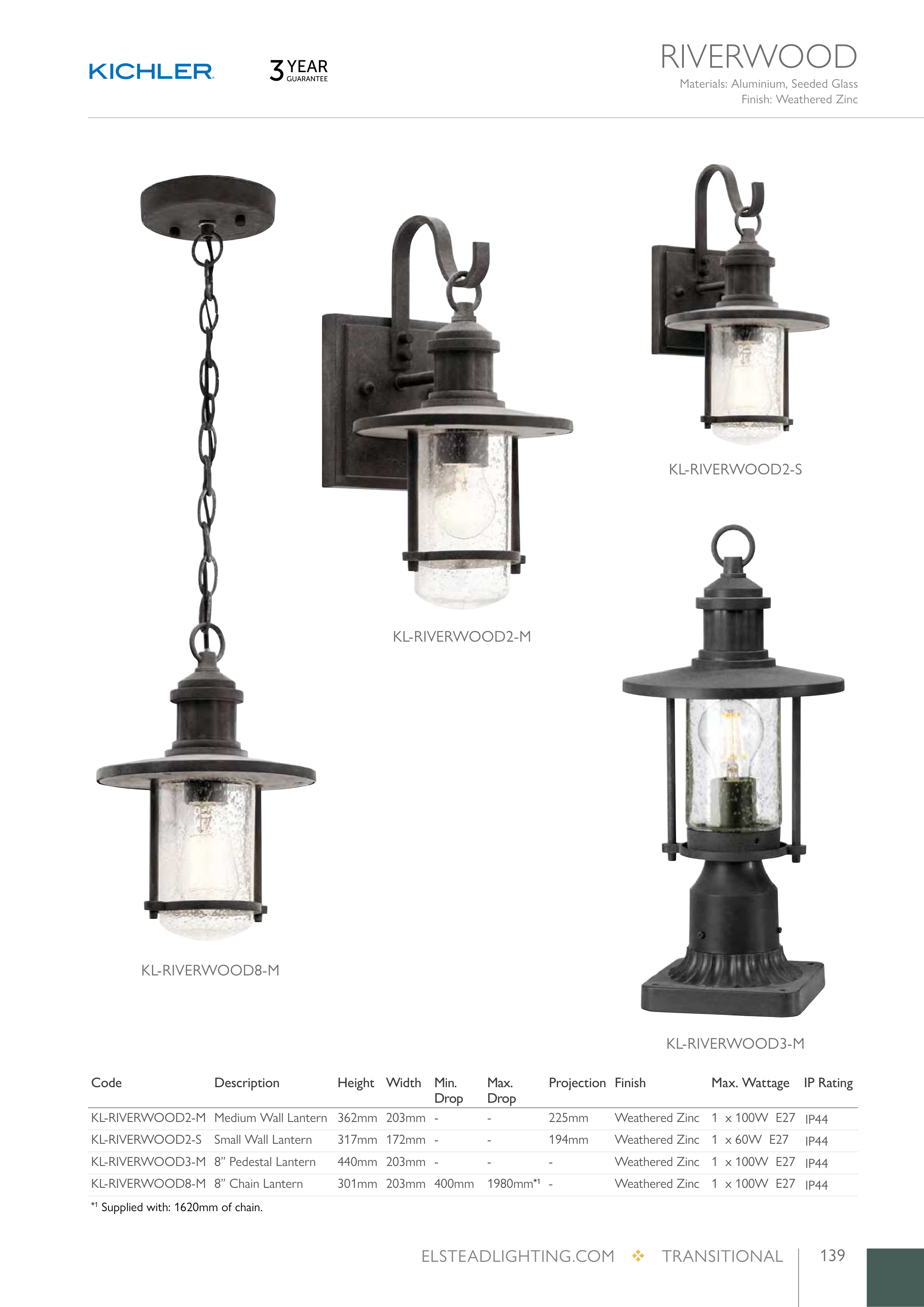 KL-RIVERWOOD8-M 8” Chain Lantern
