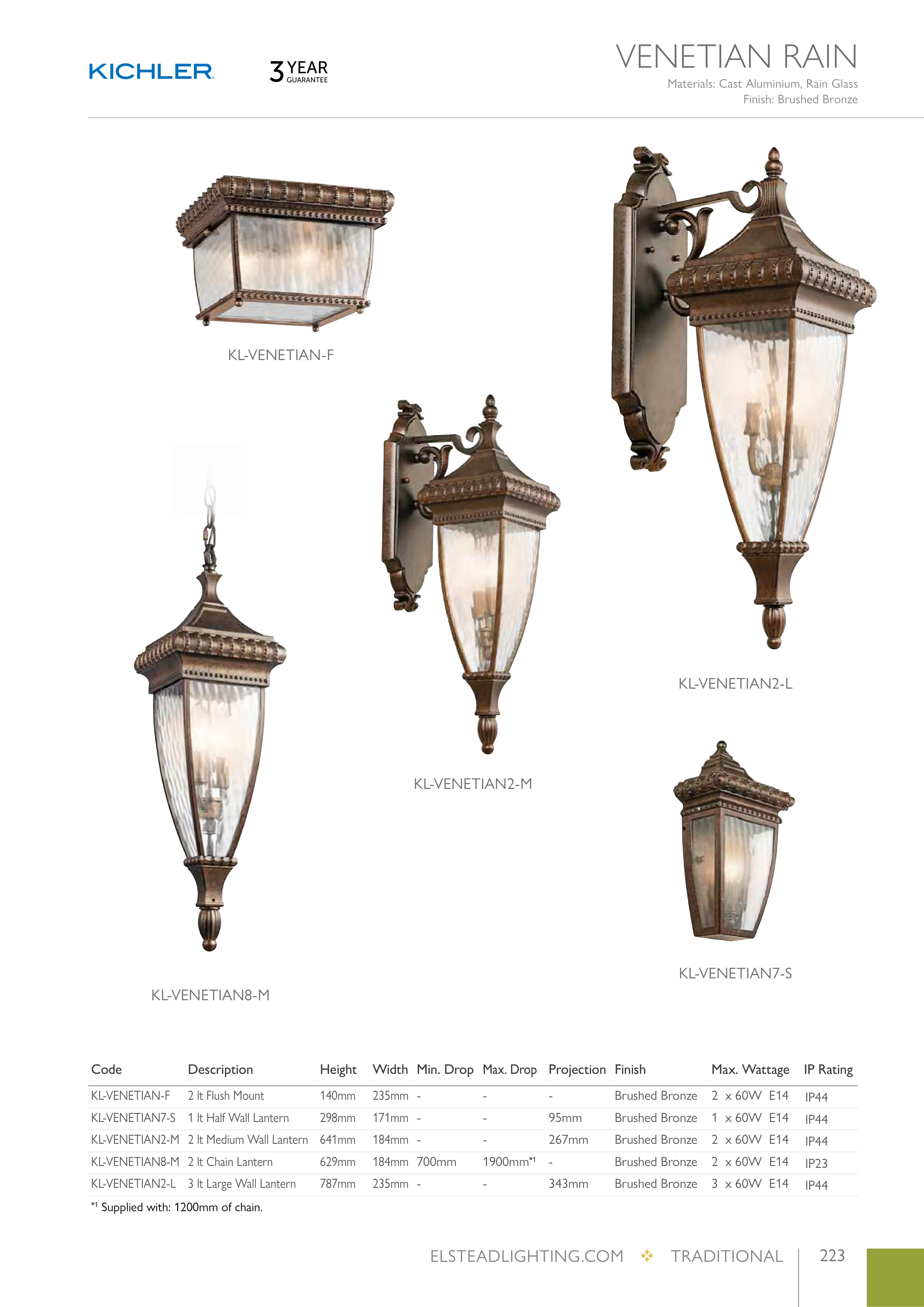 KL-VENETIAN8-M 2 lt Chain Lantern