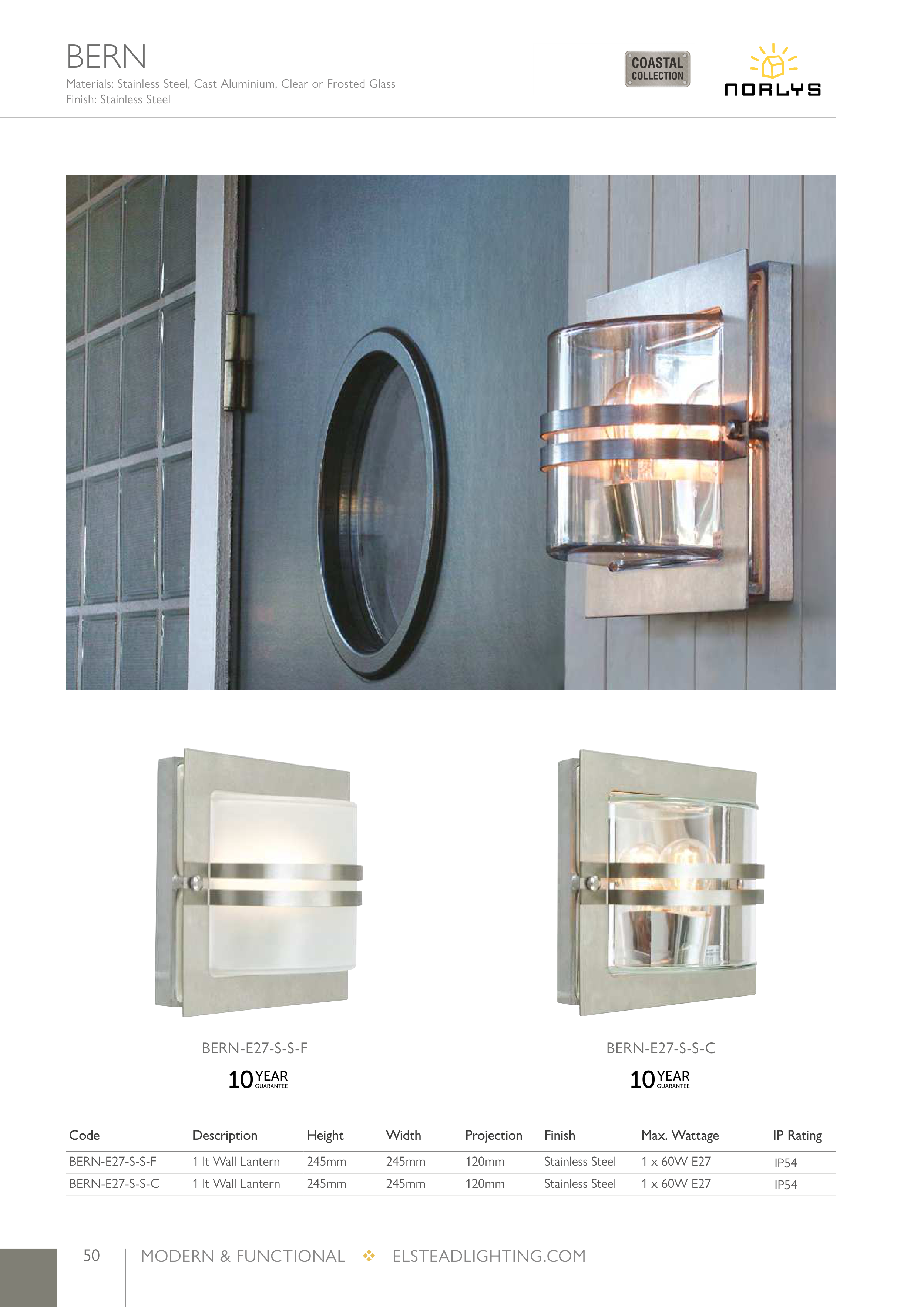 Materials: Stainless Steel, Cast Aluminium, Clear or Frosted Glass